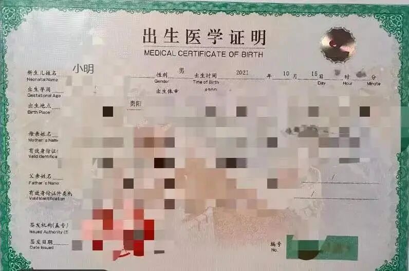 △出生证明示例