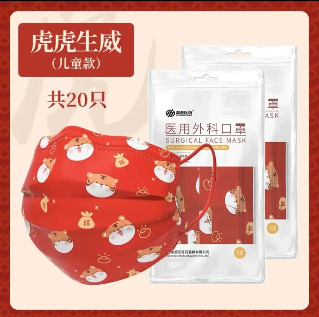新年风中国红虎一次性口罩(20只)
