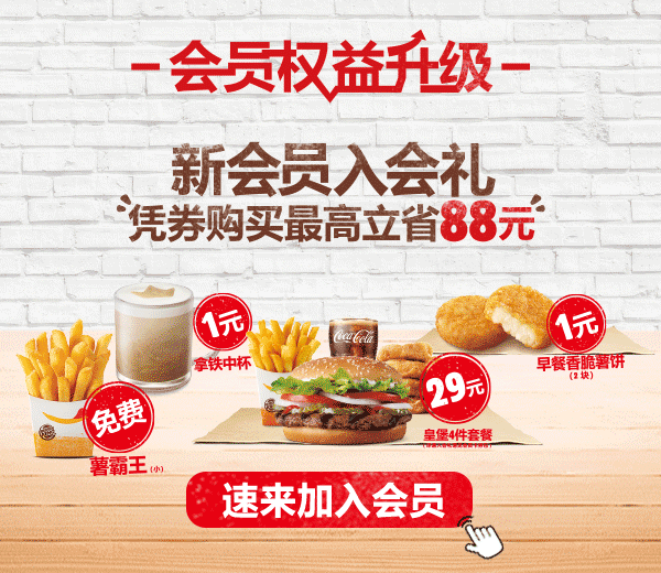 *外卖渠道价格解释:图示如有划线价格,并非指原价,而是指不参加优惠活动情况下该产品在汉堡王外送销售的常规价格(或者指其中所含单品的常规单买价总和)。除非图示另有解释,否则图示如有节省的金额或折扣比例,是与不参加优惠活动情况下在汉堡王外送单独购买该产品的常规价格(或者其中所含单品的常规单买价总和)相比较。