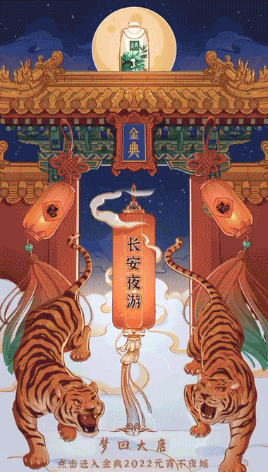 金典通过「点击伸缩式展开」2022元宵不夜城,吸引大家滑动浏览并猜灯谜,借此宣传金典有机奶。