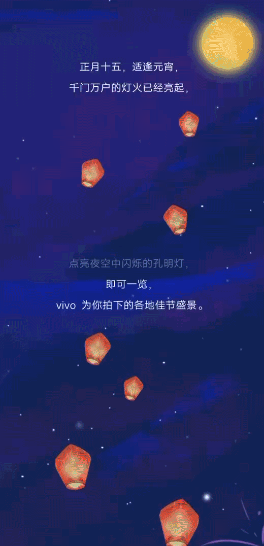 元宵佳节,点击vivo范儿准备的孔明灯输入心愿并放飞,借此送出新年祝福。