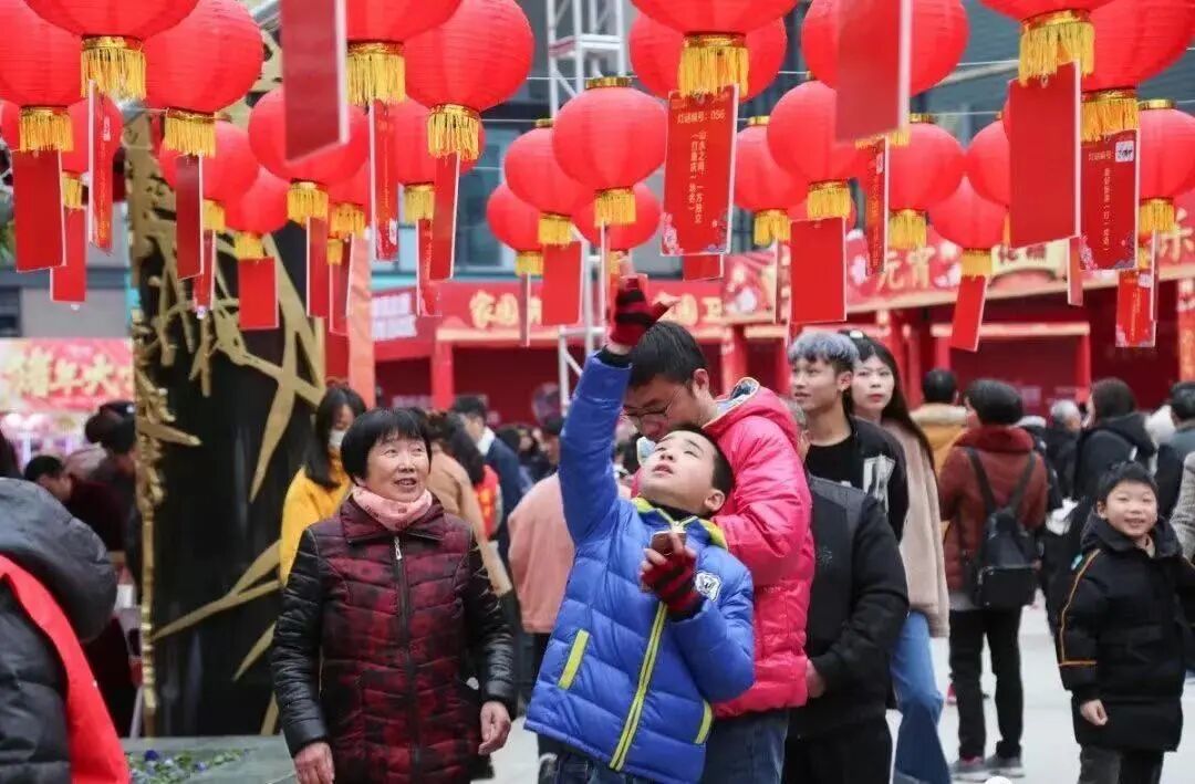 在浙江湖州,猜灯谜是庆祝元宵佳节必不可少的环节之一,“望千门如昼,嬉笑游冶”,大家满脸喜气地穿梭于各个灯谜之中,兴致勃勃地跟着身旁的亲朋好友猜测每个灯谜的谜底,小孩子踮起了脚努力够到灯笼,浓浓的暖意静静流淌在每一个人身上。