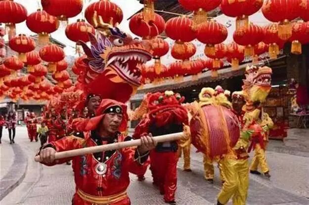 庆祝方式:耍花灯,舞狮子