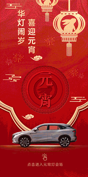 「点击切换」模拟进入元宵灯会会场,吸引大家和荣威ROEWE汽车一起猜灯谜并欢度元宵佳节。
