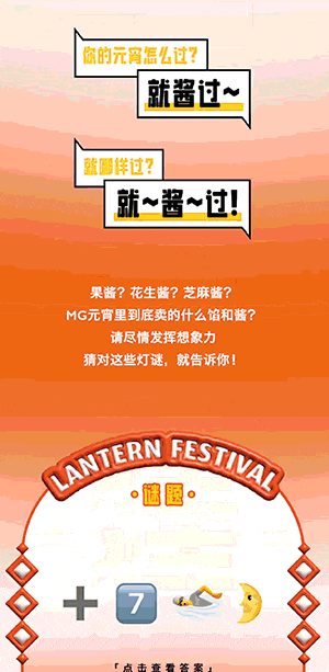 元宵节之际,快来参与上海MG名爵汽车的emoji猜灯谜活动,「点击展开」查看灯谜的答案,吸引大家参与#元宵节打算怎么过 的话题活动。