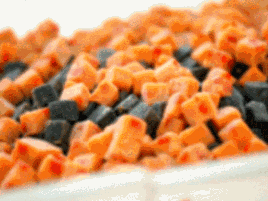 山楂馅、黑麻馅、可可馅、五仁馅,已经被切割成了四四方方大小统一的馅料,静静的等待着披上暖融融雪白外衣。