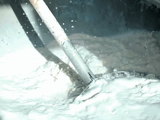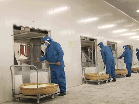 巨大的石磨通过机器的带动,看似简单重复的匀速运动,在石磨一圈一圈的碾压下终于成为细细的粉子,色泽洁白。