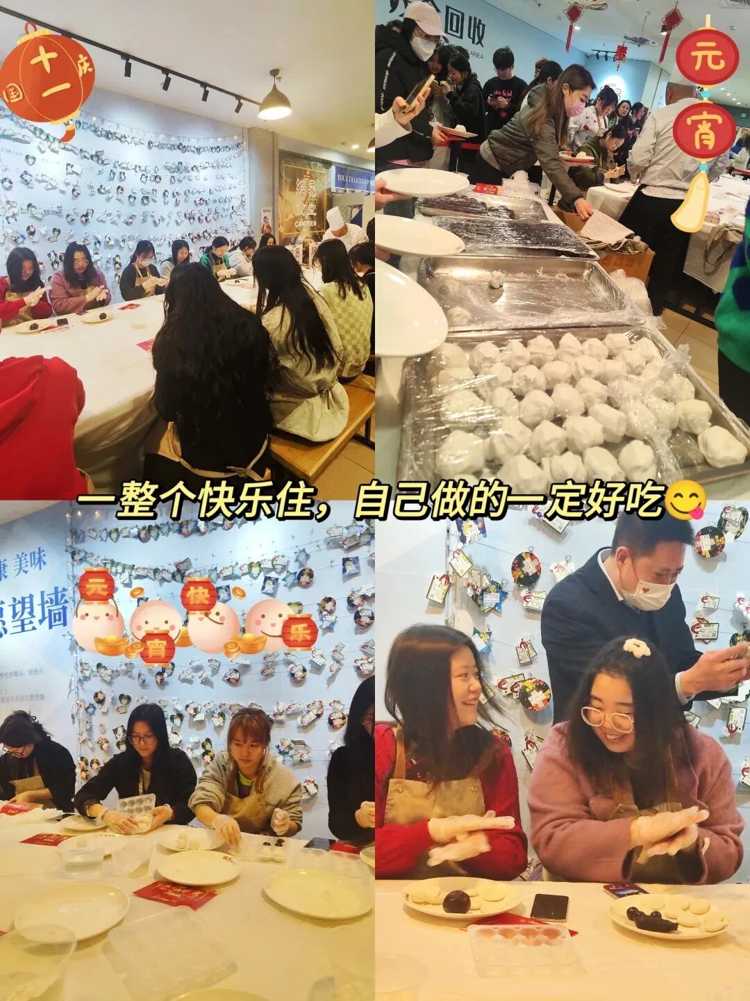元宵节的美食也必不可少,度厂餐厅为同学们准备丰富的节日美食,除汤圆外,还有很多其他的节令美食,比如饺子、酒酿圆子等等。部分中餐厅中午设有汤圆DIY区域,专业师傅教包汤圆。自己动手做的甜蜜,让节日更有意义!