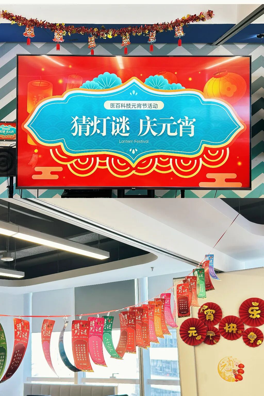 元宵佳节,医百科技线上的小伙伴在公司大群里进行线上猜灯谜,线下办公的小伙伴在会议室里参与猜灯谜活动,线上线下共庆元宵。