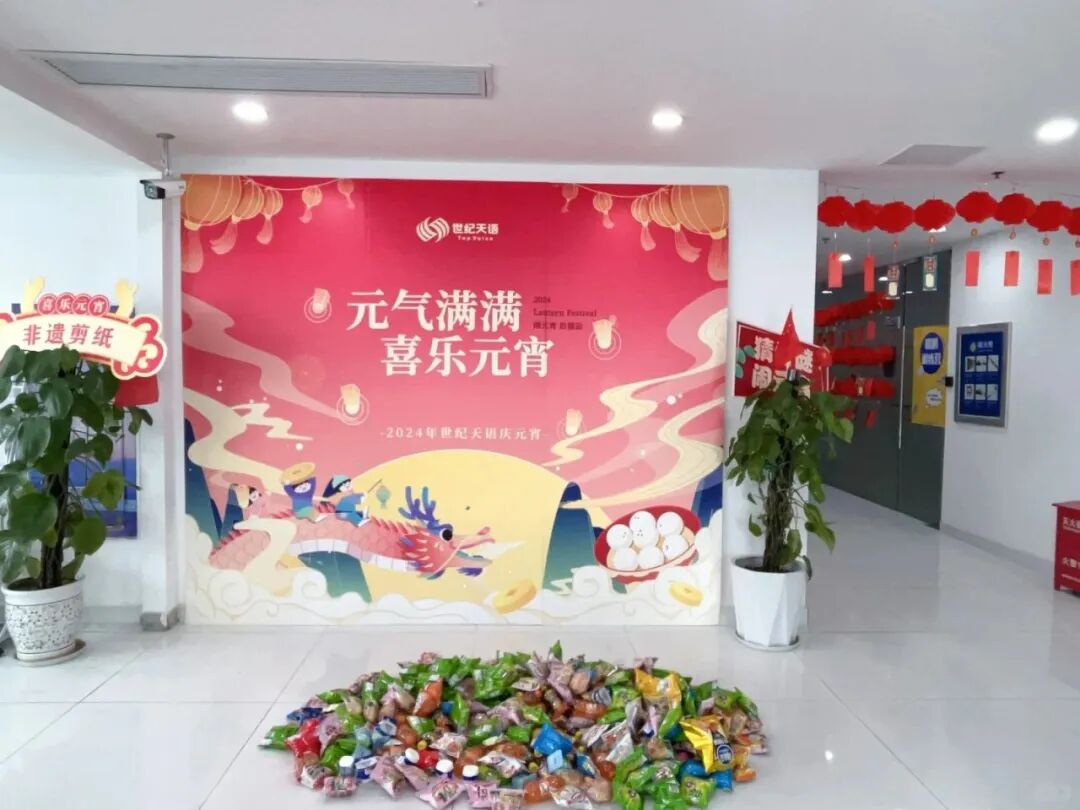 世纪天语在办公室组织了一场灯谜会,在办公区挂了超多灯笼,元宵氛围拉满!还有零食大作战活动,超有意思的!