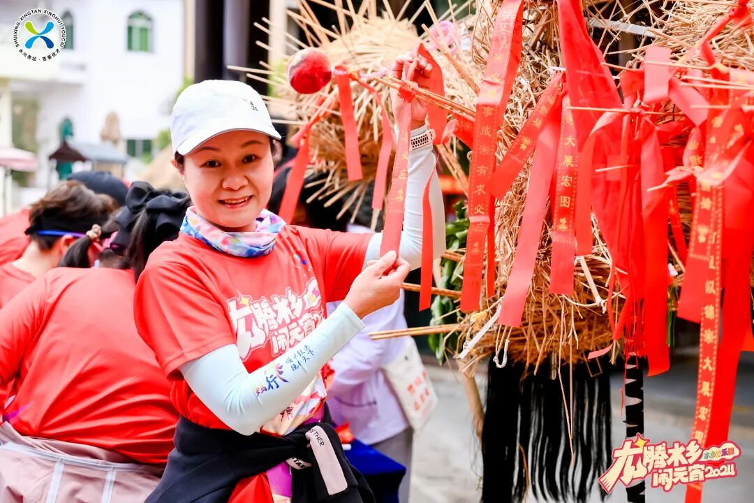 在抵达终点后,参加者们品水乡美食,击响状元鼓、走过巨济桥,祈求幸福、安康,领取生菜、甘蔗、苹果等“好意头”的礼品,欢度元宵佳节。
