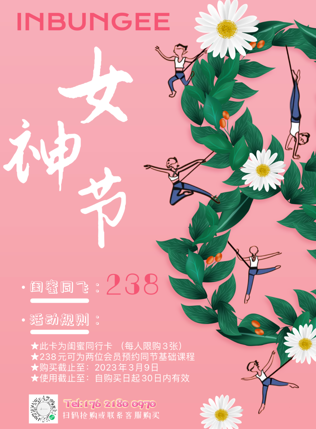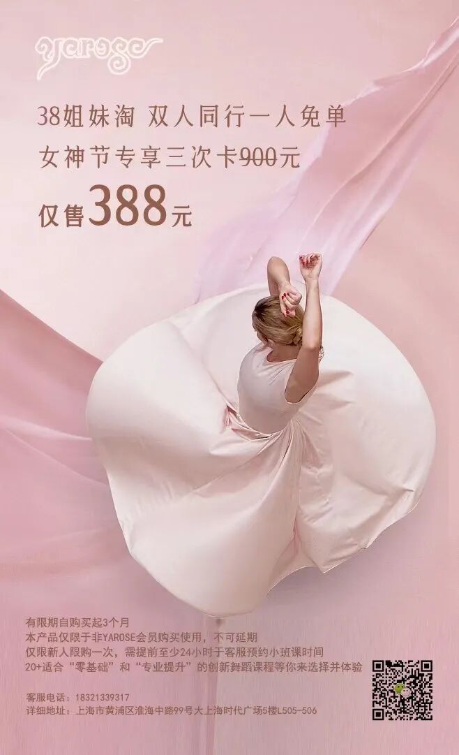女神节双人同行一人免单,女神节专享三次卡仅需388,快来体验吧!