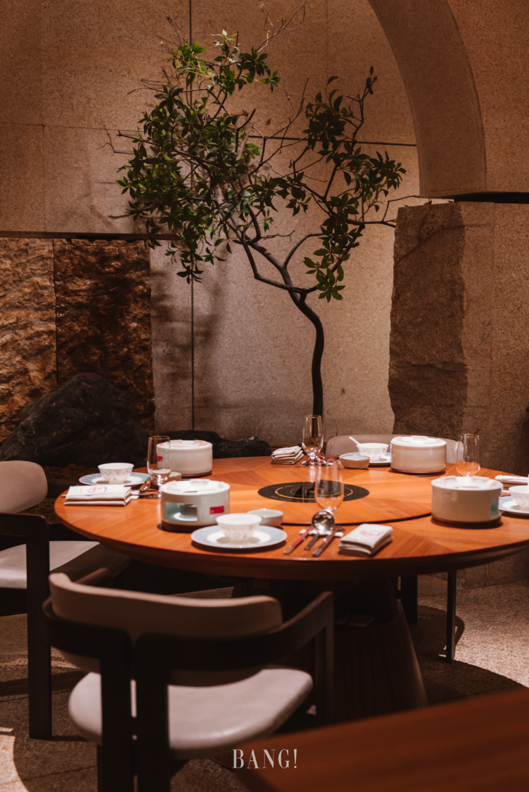 店内拥有复古岛形吧台、典雅大堂、典雅包间等区域,快来沉浸于此,感受被中式山水环抱的氛围,以及精致的美食佳肴吧!