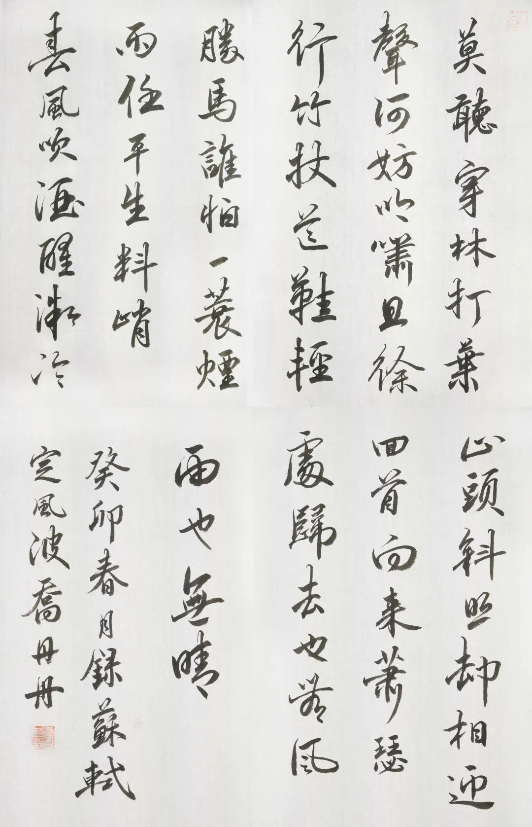 我日常的书法练习是以临帖为主,练得较多的当属隶书、小篆、行楷,这些都是兴趣使然,离真正的“书法”还有很长一段路要走。在我看来,书法、写作、绘画、音乐此类艺术一脉相通,起承转合、形神意韵,到某个点即是最佳,人生亦如是。