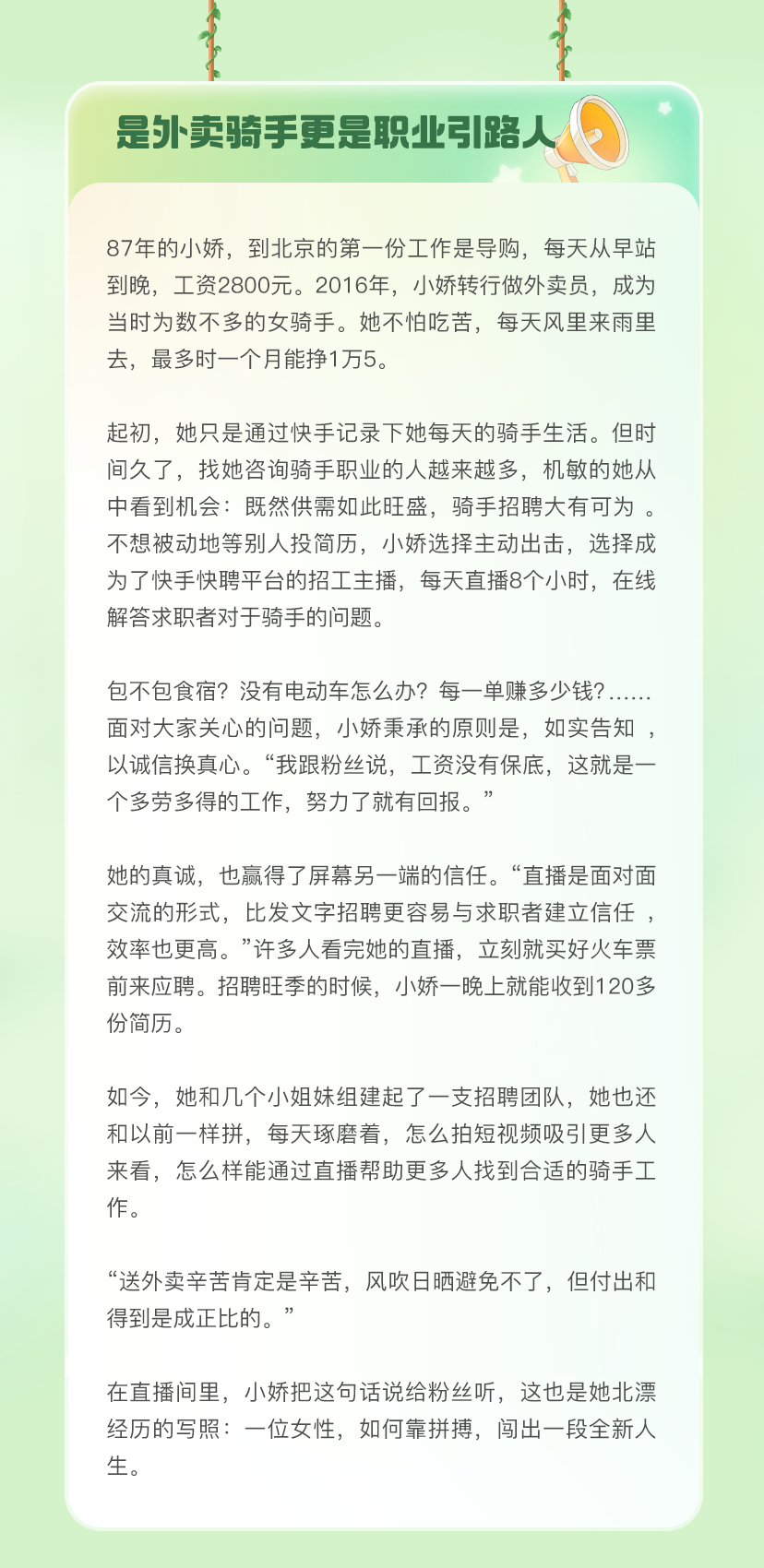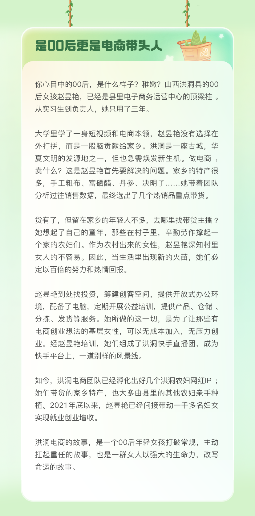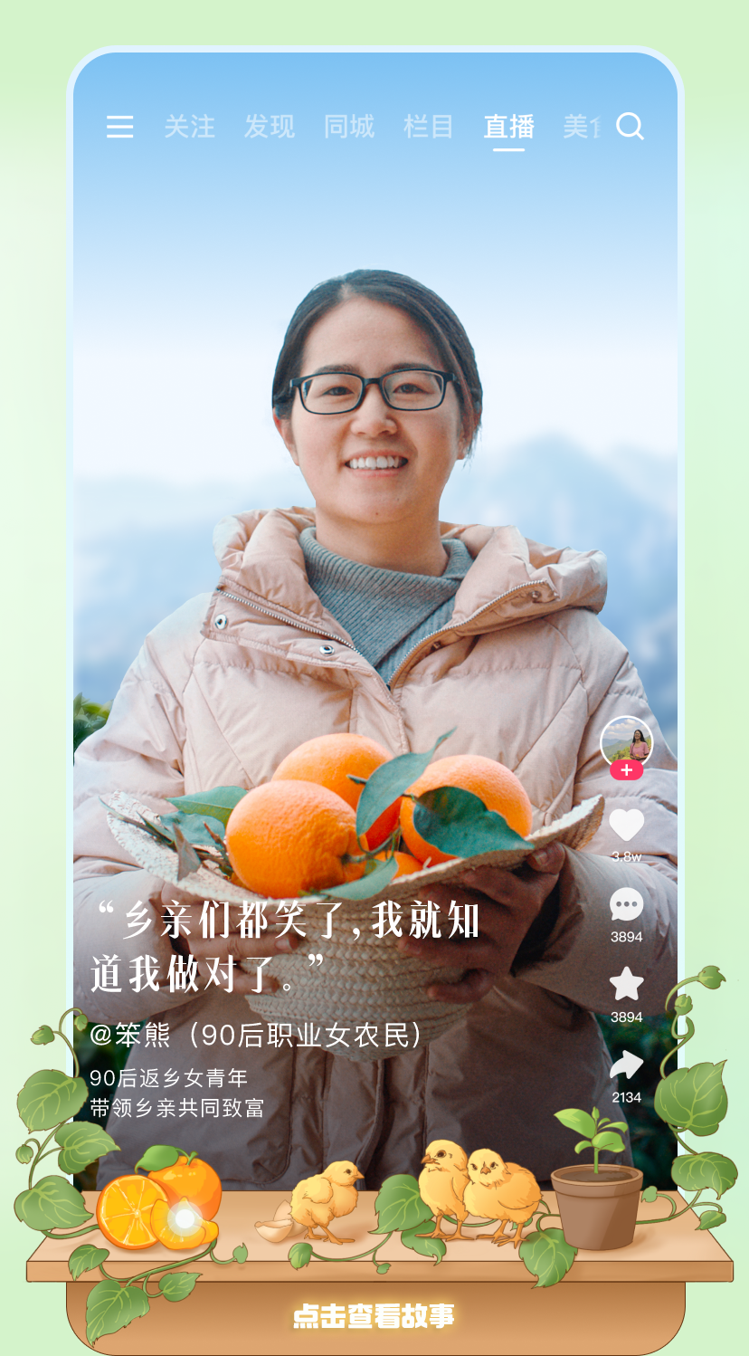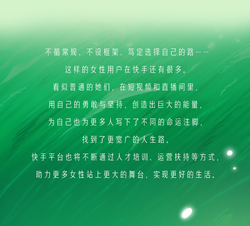 推荐:「点击切换后展开」观看6位快手女性用户的故事,多个平级「点击展开」故事详情,借此宣传快手平台。