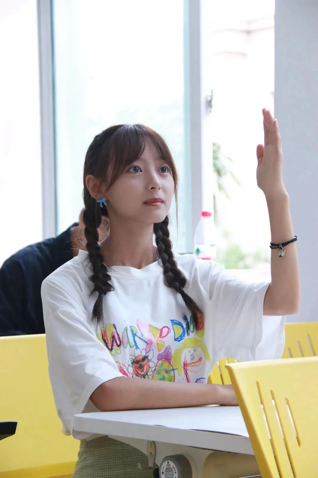 书籍画作前亭亭玉立