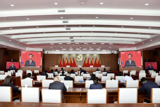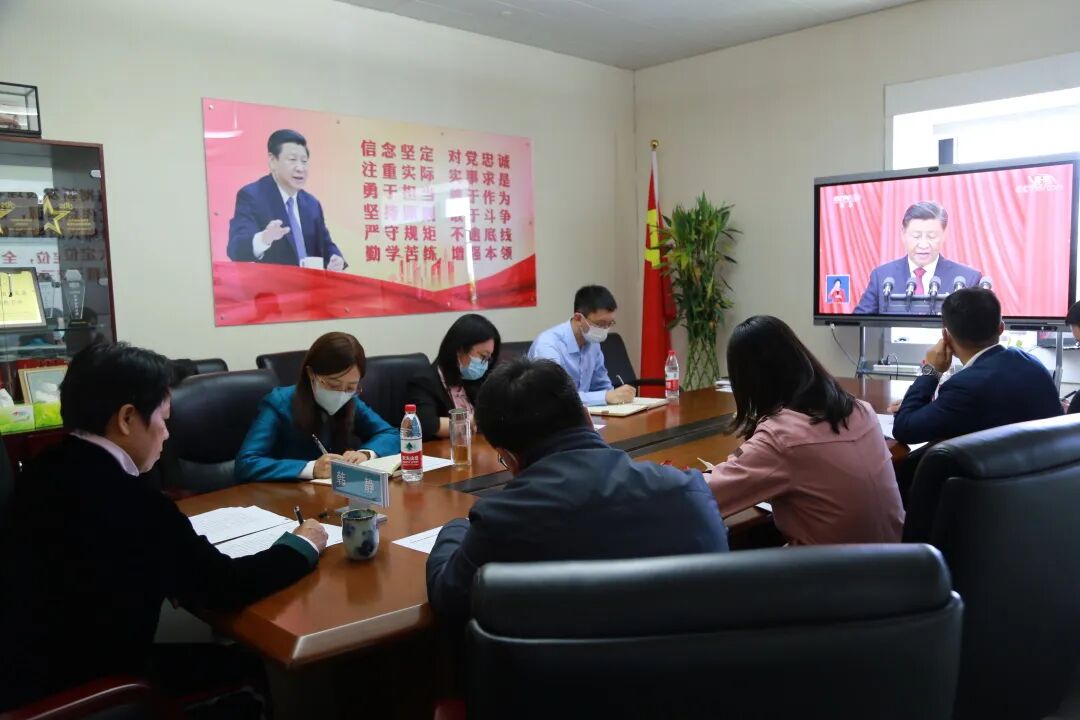 ▲ 农行新疆塔城分行集中收看党的二十大开幕会直播
