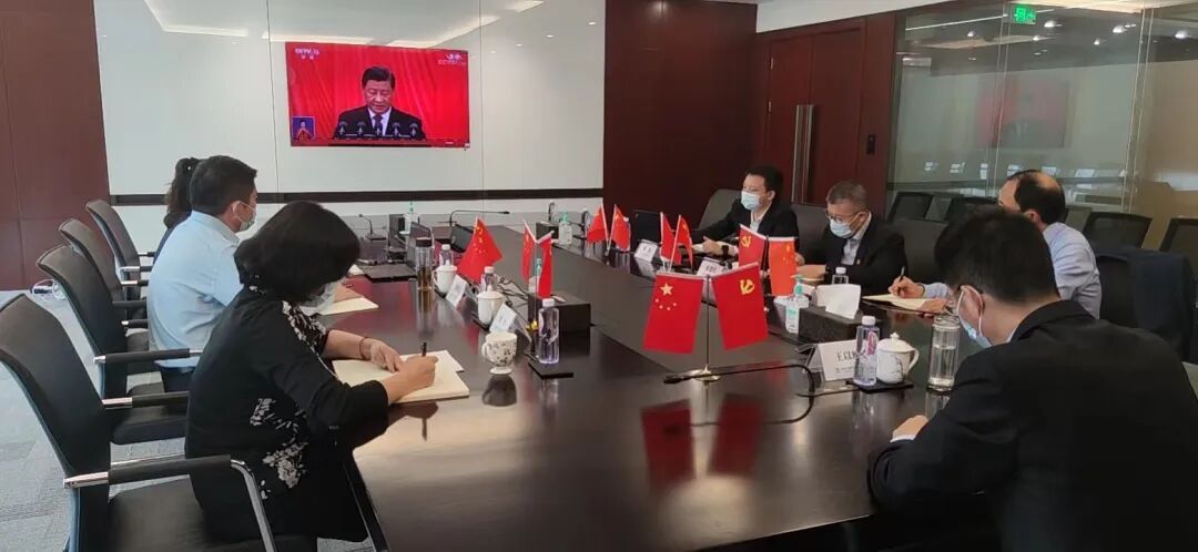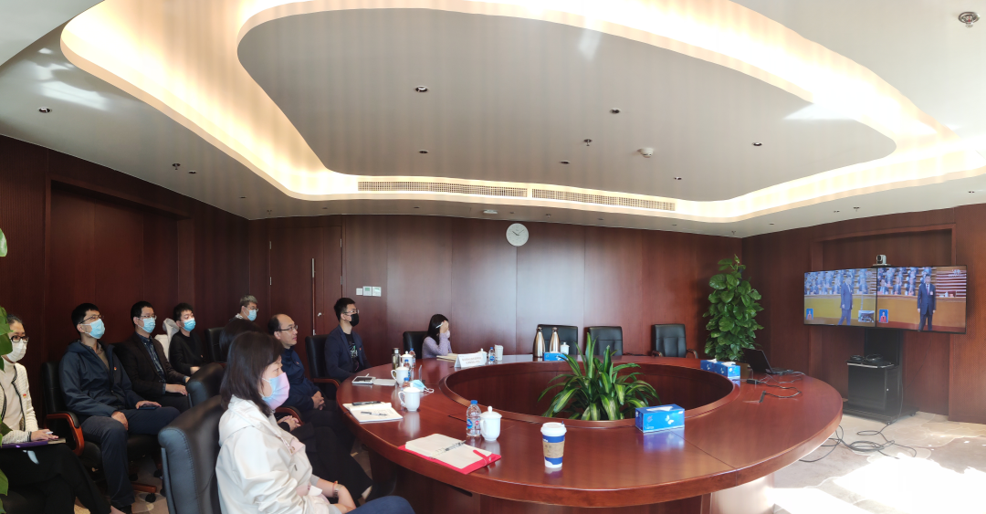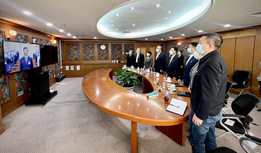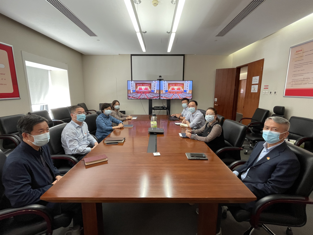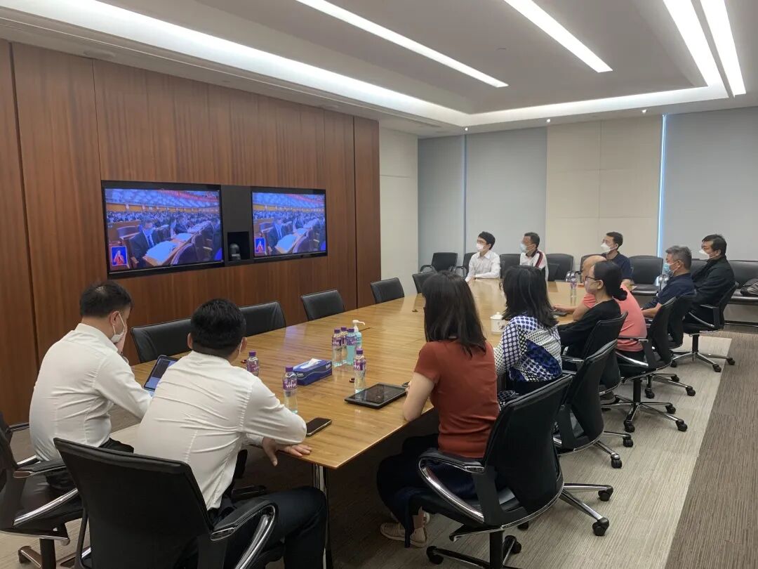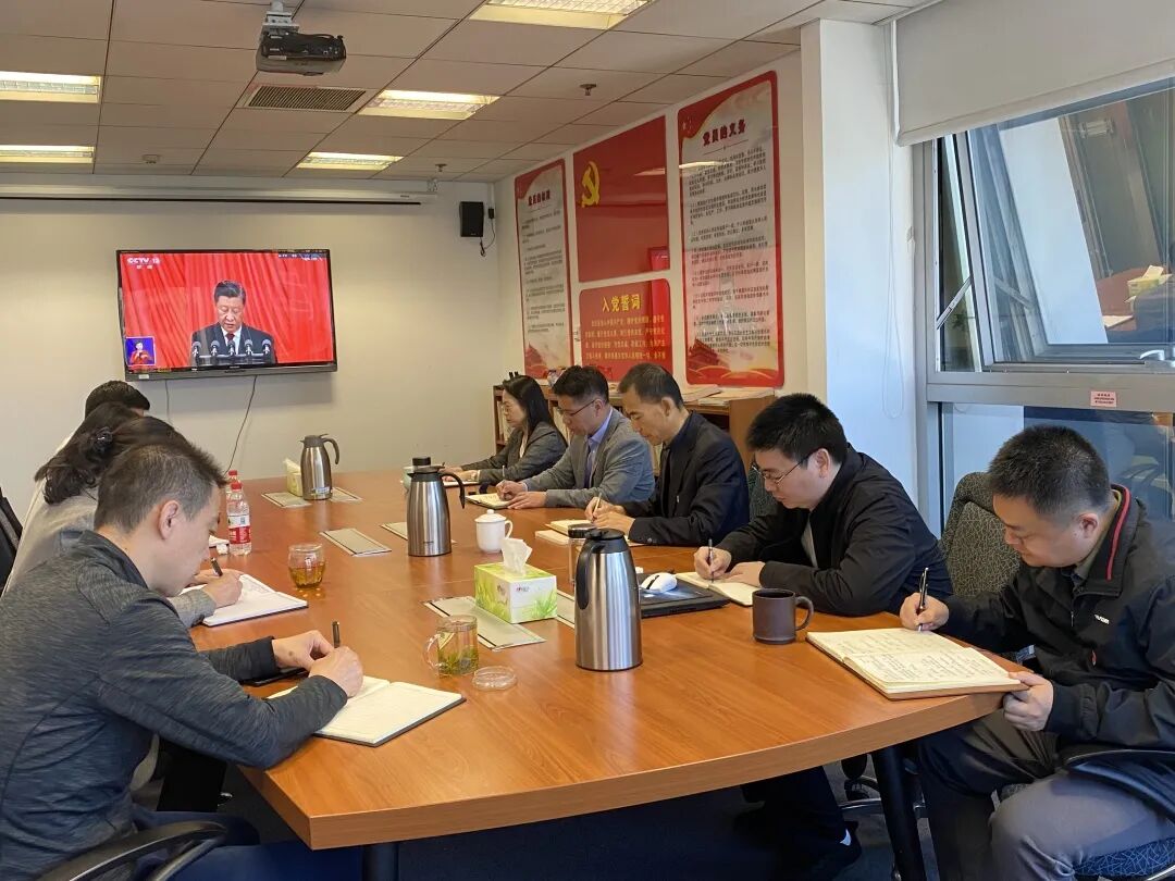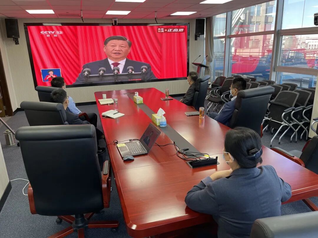 ▲ 派驻纪检监察组组长、农行党委委员汤军与派驻纪检监察组全体干部共同收看党的二十大开幕会