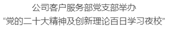 中国人寿寿险公司各级机构党委把党的二十大精神作为理论学习重要内容,以中心组学习、三会一课、主题党日、联学联建等多种形式,迅速开展专题学习。山东分公司创新开展“知行并重 实干笃行”大讨论活动,河南分公司开展“新征程新使命,我与国寿共奋进”演讲比赛,河北分公司开展“奋进新征程 建功新时代”主题观影活动,大连分公司开展“喜迎二十大、永远跟党走、奋进新征程”征文比赛,湖南分公司开展“半小时”读书活动,宁夏回族自治区分公司开展“红色力量 耕读不辍”职工读书讲习活动,阐述对党的二十大精神的理解,激发朝气蓬勃、奋发有为的精神状态,推动二十大精神学深悟透。
