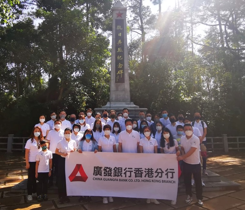 ▲ 香港分行组织全体员工及其家属参观香港乌蛟腾烈士纪念园及乌蛟腾抗日英烈纪念碑,学习东江纵队港九独立大队成员及乌蛟腾村村民的抗战事迹,增强全行上下的爱国爱港情怀。