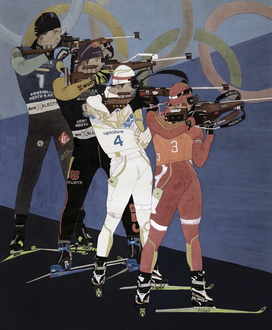 图绘北京冬奥赛场夺冠时刻,细致表现冰雪运动中的力与美,生动展现生命绽放之光。