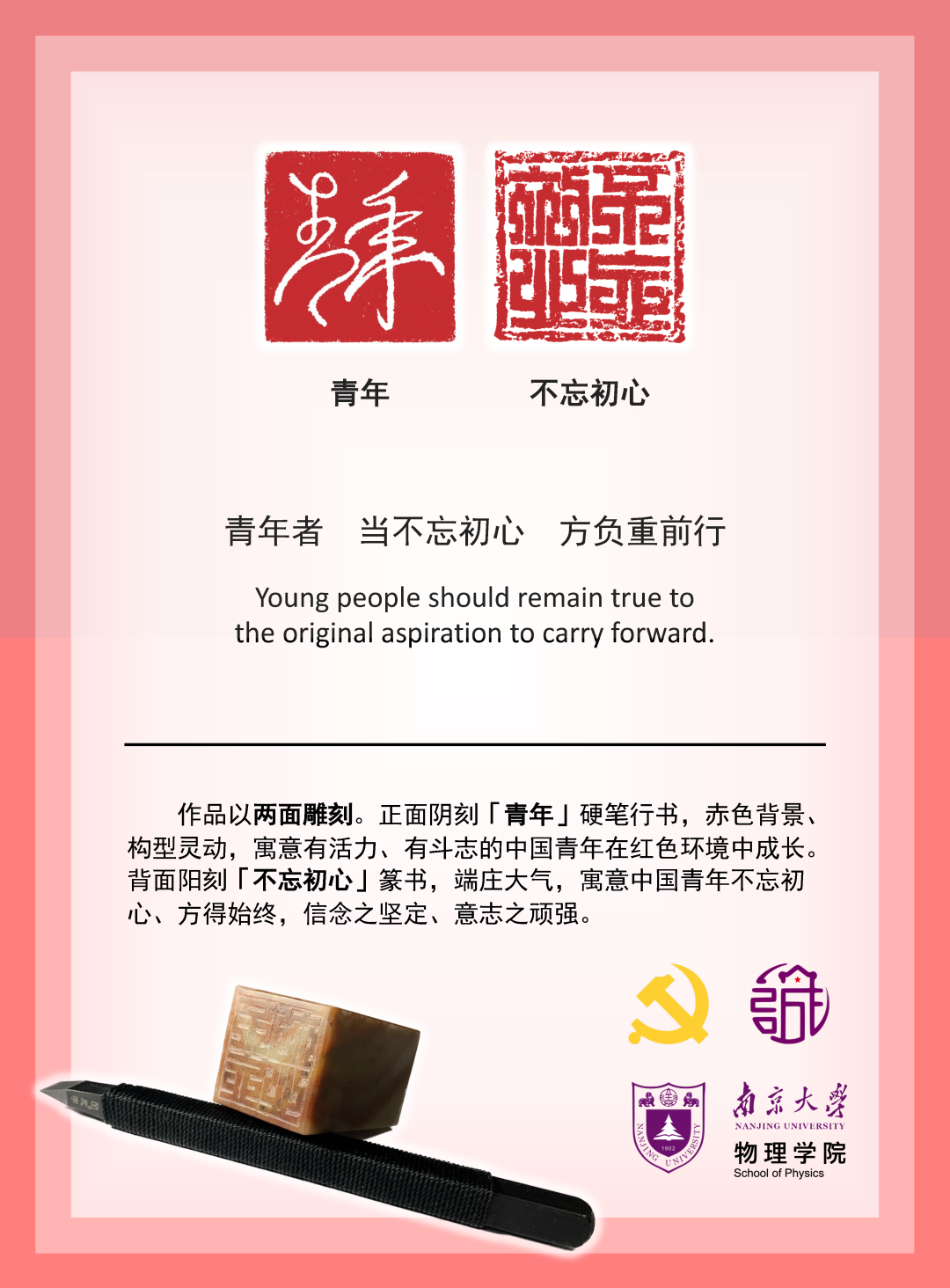 “青年者 当不忘初心 方负重前行”篆刻