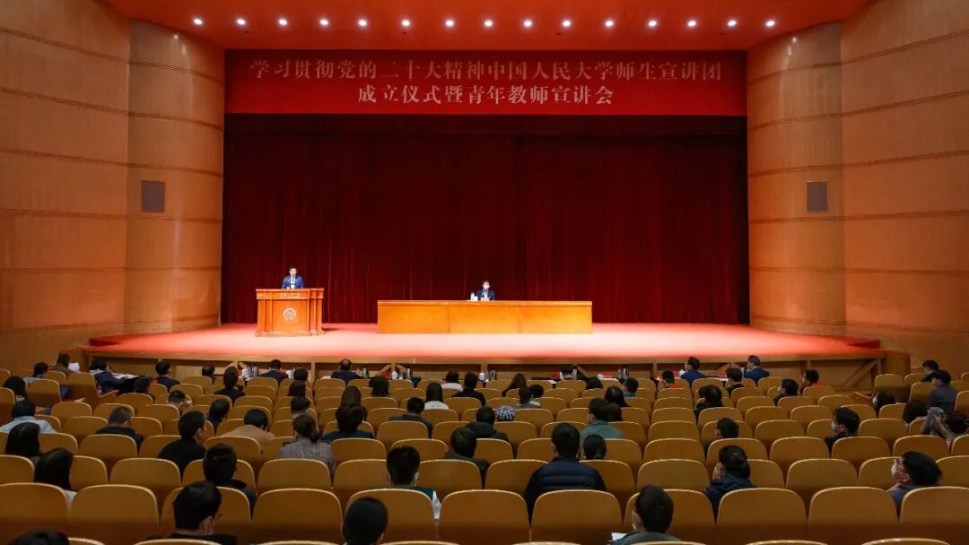 11月11日,学习贯彻党的二十大精神中国人民大学师生宣讲团成立仪式暨青年教师宣讲会在明德堂举办。学校党委书记张东刚为青年教师作党的二十大精神辅导报告。