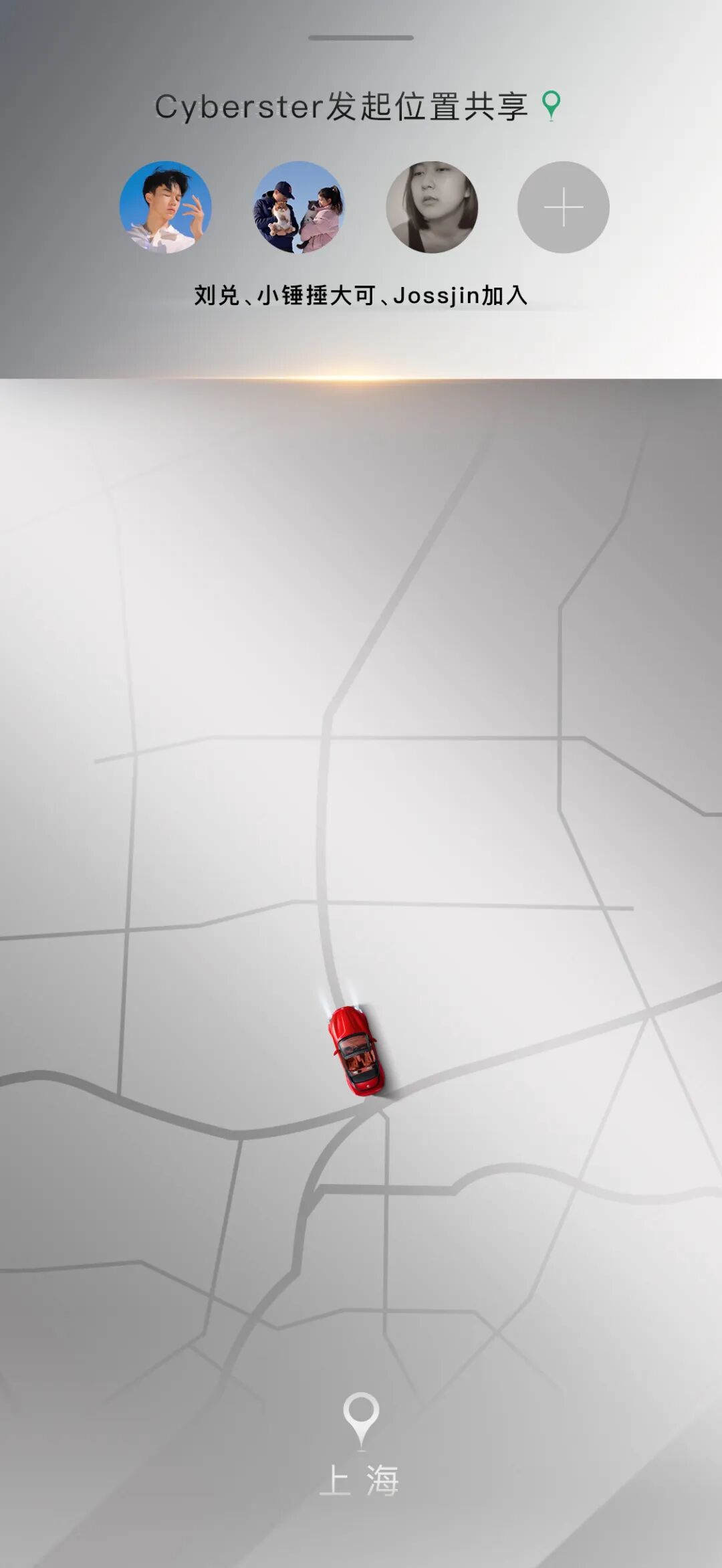 推荐:「点击切换后展开」模拟加入位置共享,带大家感受上海的城市印记,吸引大家购入Cyberster汽车,漫行于城市之间。