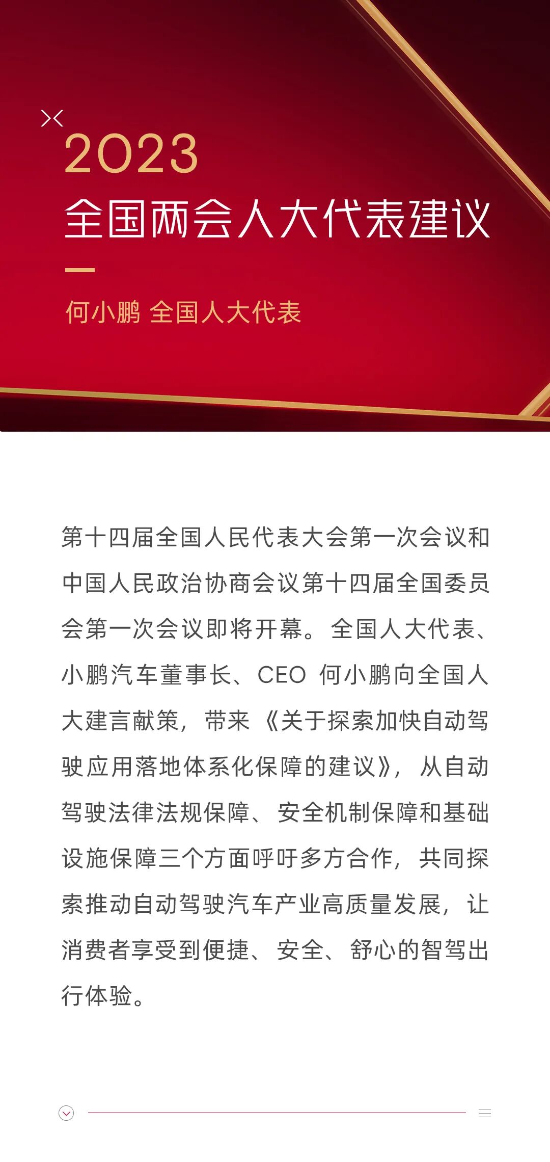 何小鹏两会建议:探索加快自动驾驶应用落地体系化保障