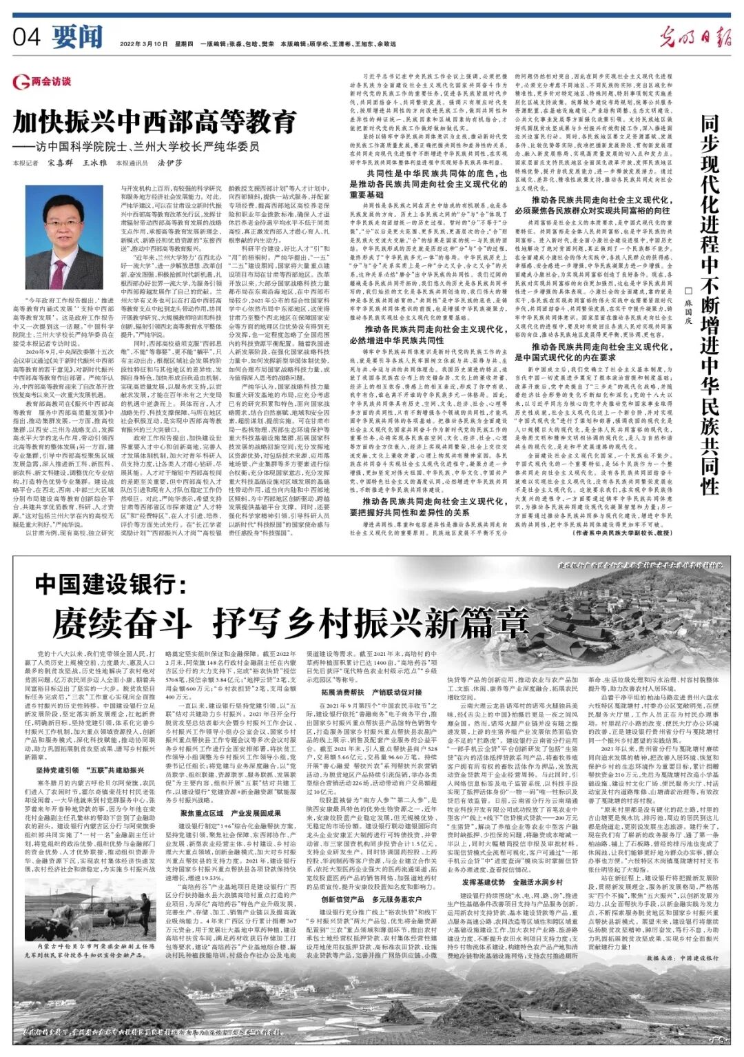 3月5日-11日,全国两会召开。全国政协委员、兰州大学校长严纯华接受媒体采访,为西部教育未来发展建言献策。