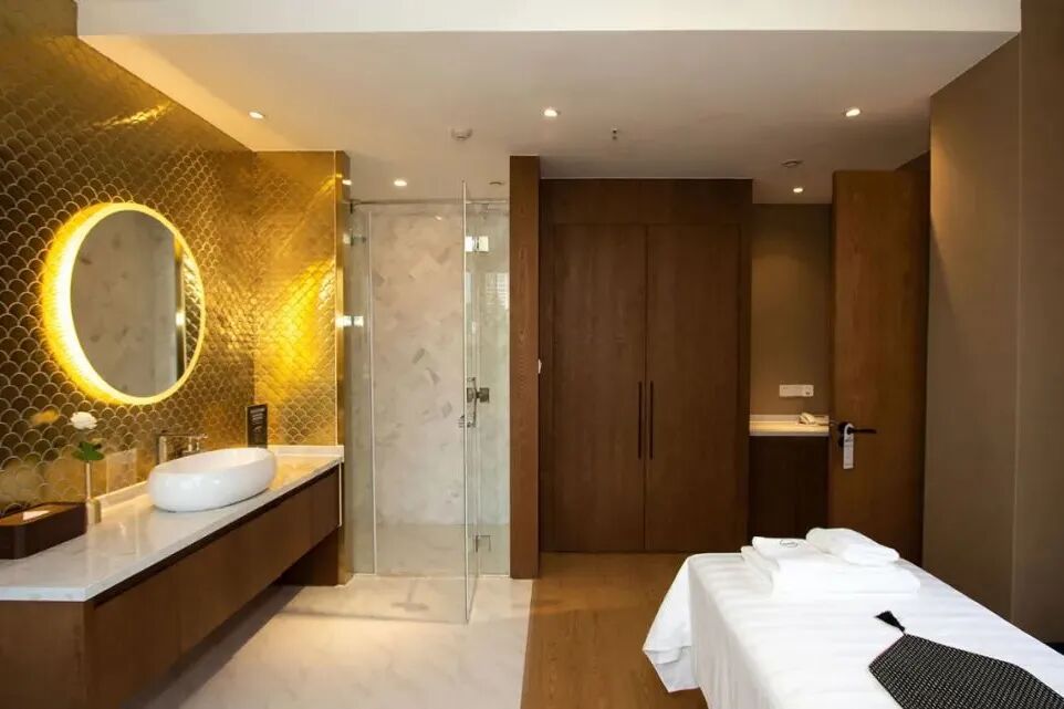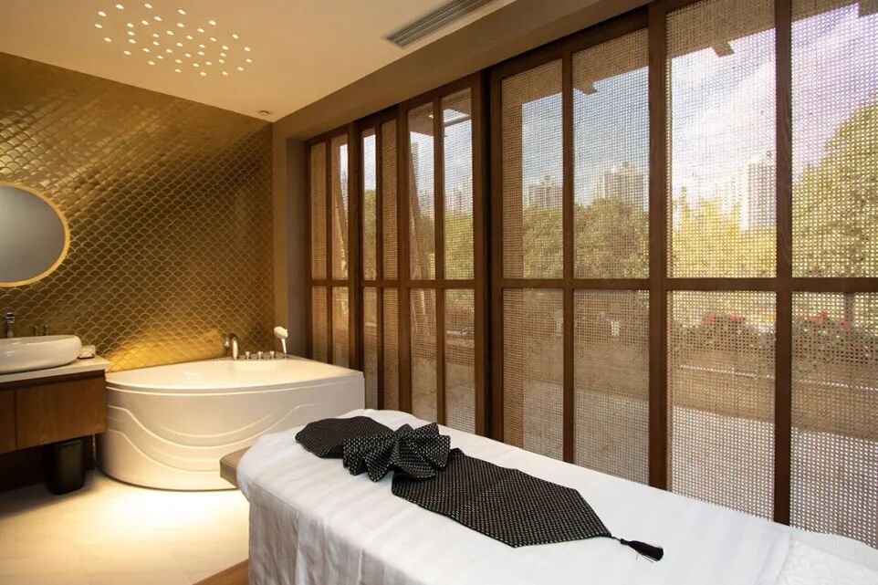 每间SPA房都配备一张SPA床,外加一个可以精油泡泡浴的大浴缸。泡完澡后,会有专业的按摩师来给你按摩,整个过程行云流水,直达身体的痛点,轻松告别疲惫!