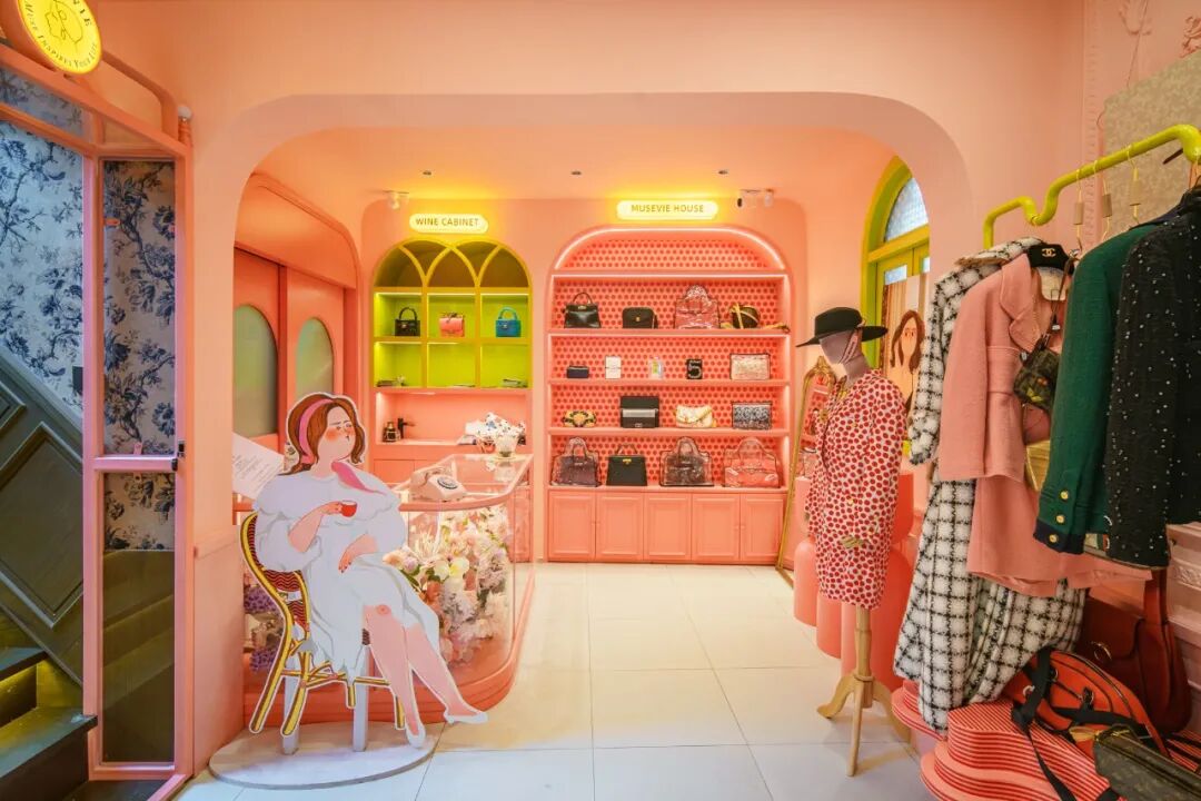 太原路上的这幢粉色洋房,吸引着每一个过路人为它驻足。而它正是VINTAGE MUSEVIE的姊妹店——Musevie暮色18。Musevie暮色18上下共三层。一走进店内,就步入了一个粉色法式花园。鲜花元素是随处可见,浪漫至极。CHANEL的化妆箱包、Hermes的秀款包、全球限量3000个的LV老花足球包……还有各种中古珠宝、中古服装一应俱全。最低甚至可以三位数买到一二线品牌,性价比极高。二层是新店打造的沙龙空间,三层则是原木风的阁楼,都是绝佳的拍照地。不过参观二三楼要提前预约哦~藏在五原路弄堂里的发财商店,有着老房子独有的情调和氛围。门口的大镜子很适合凹造型拍照,让自己和“發財”同框。店不大,但五脏俱全。除了大牌vintage,店里还代理了不少设计师品牌和發財自己出的单品,好看且不撞款~