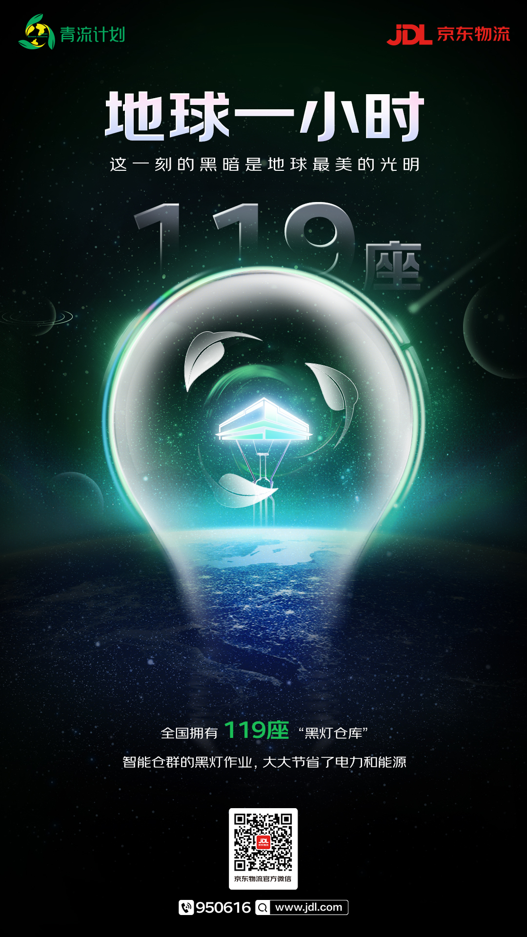 推荐:「点击切换并播放音频」模拟关灯,借此吸引大家的注意力,借此宣传京东物流已在全国拥有的119个“黑灯仓库,大大节省了电力和能源。