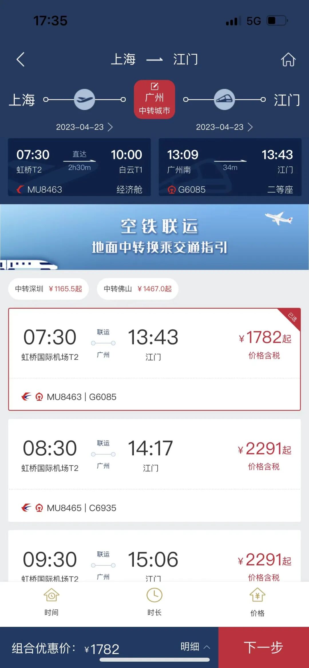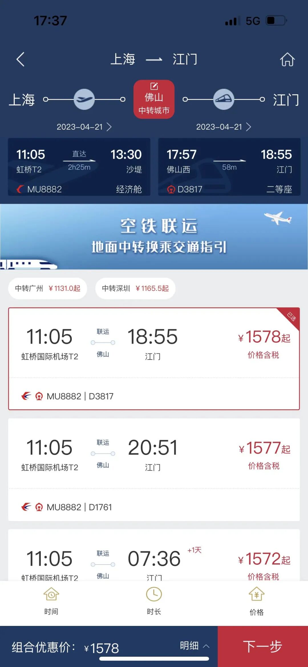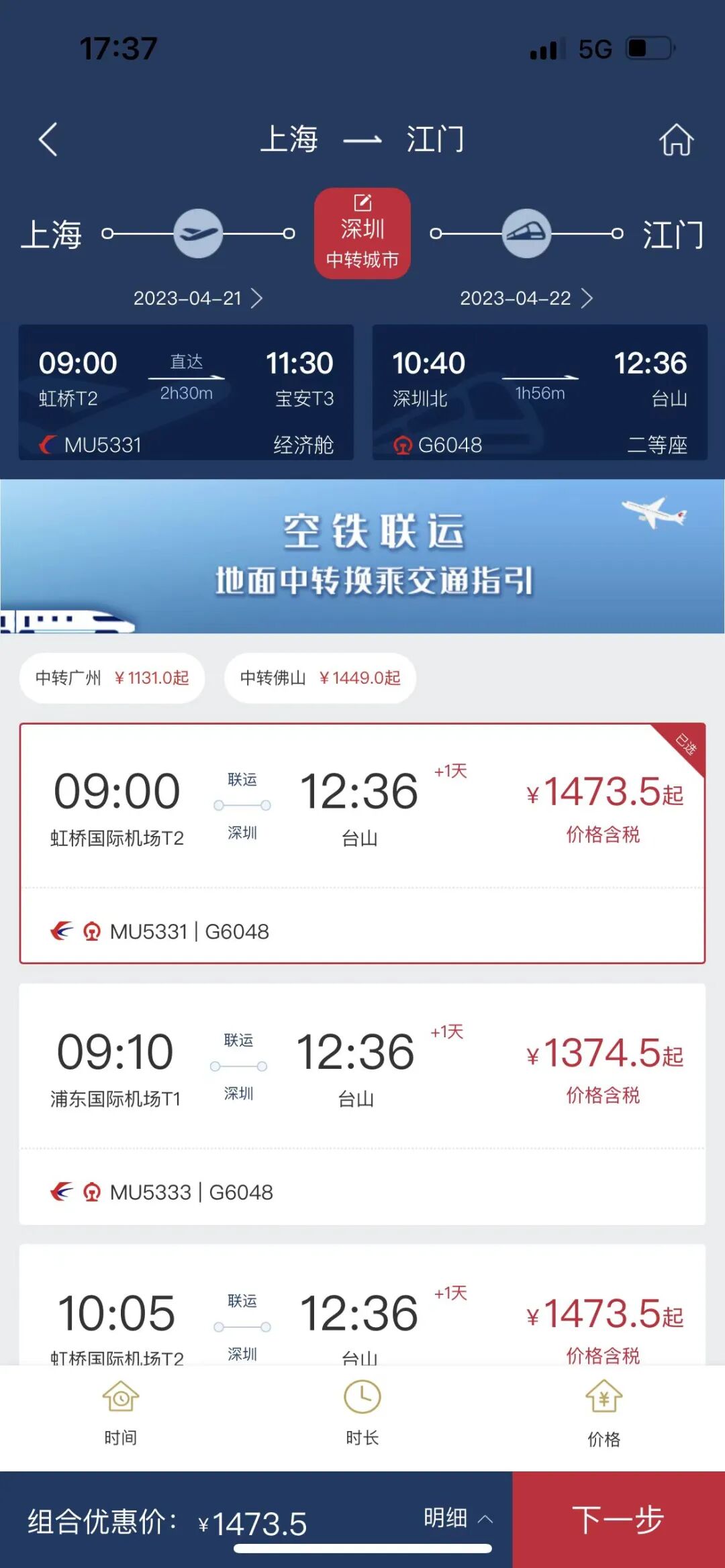 ⭐可根据实际情况选择飞广州、深圳、佛山再通过空铁联运直达江门,东航APP可实现空铁自由组合和一笔支付,将两段旅途无缝拼接为一个整体