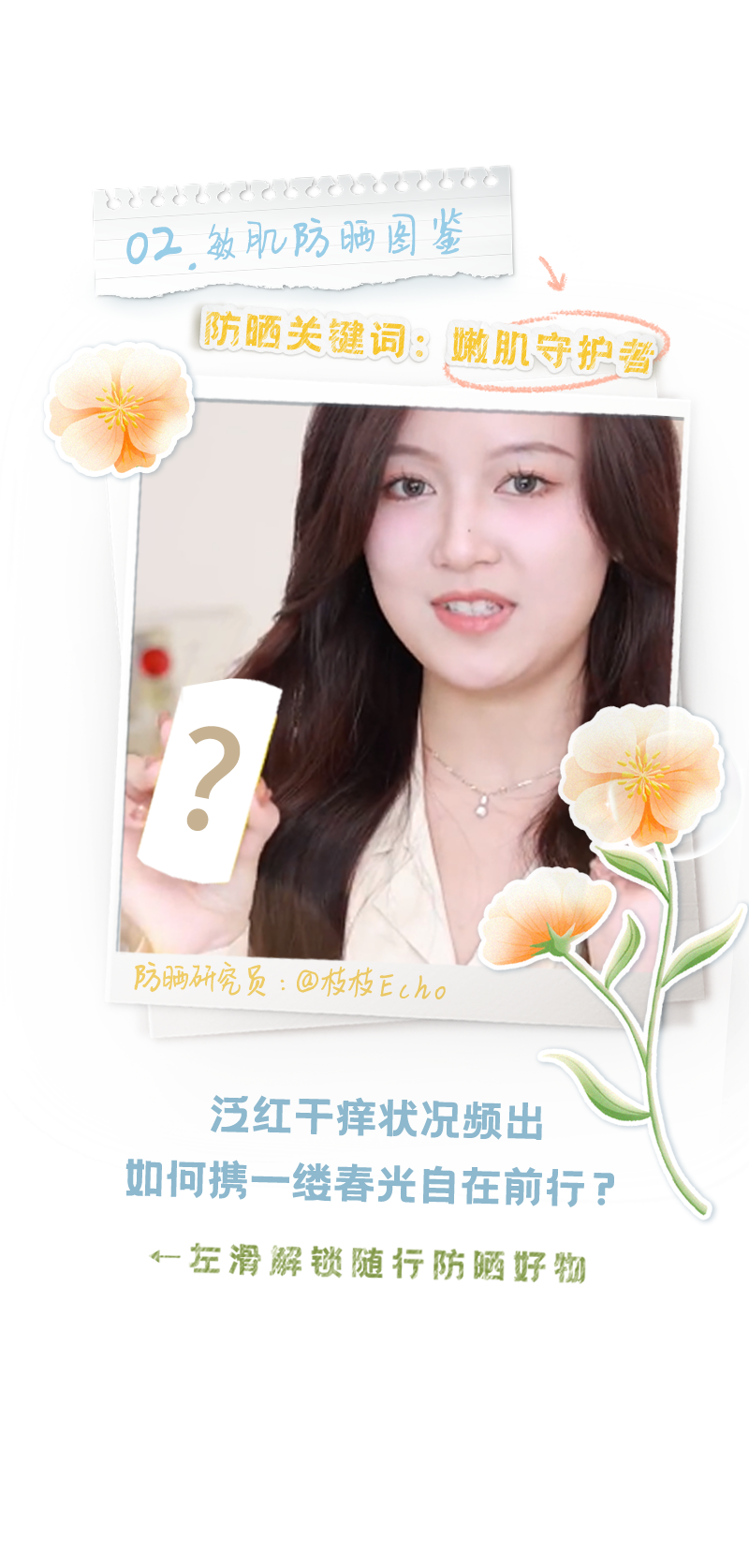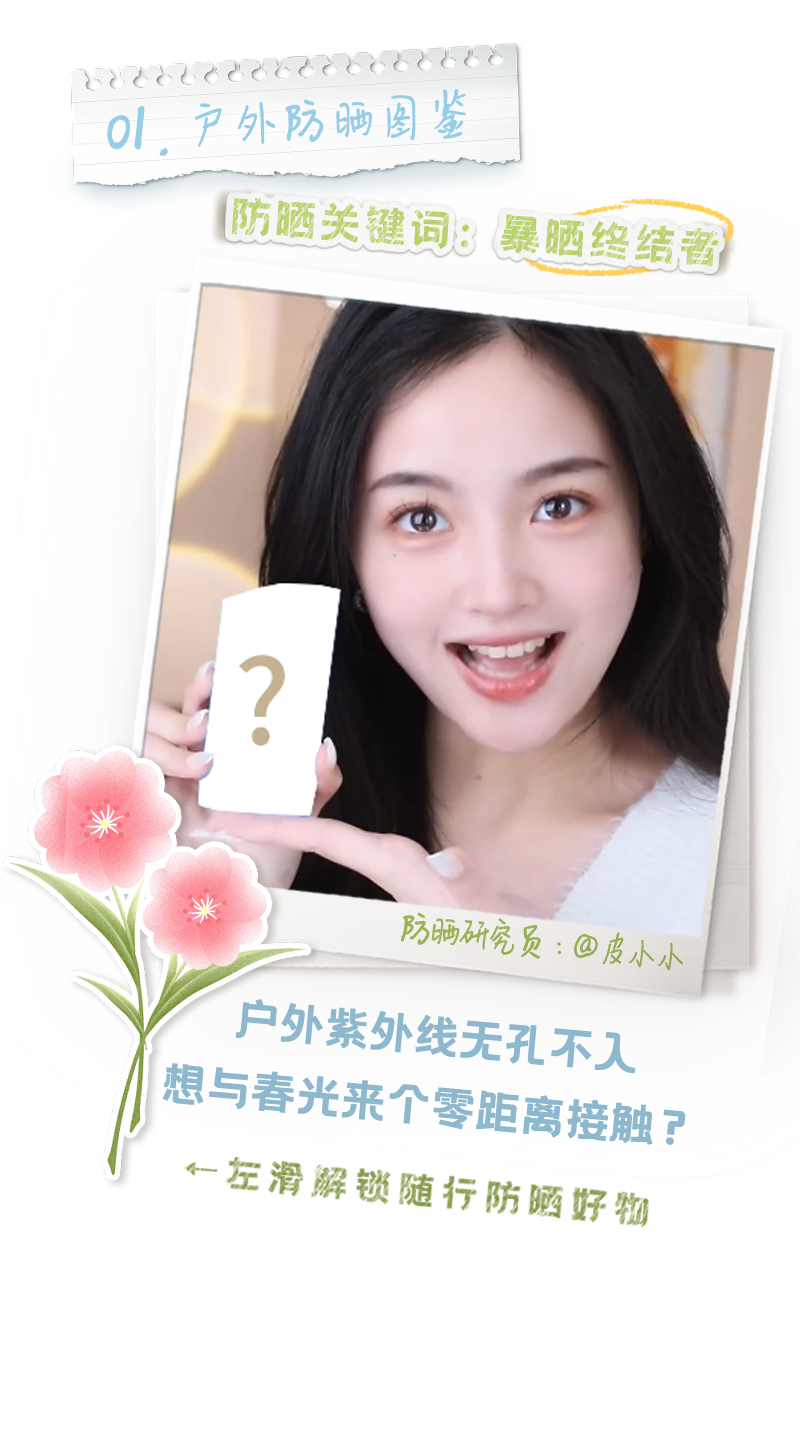 推荐:「点击展开」春日防晒图鉴,「前景左滑」查看安热沙防晒好物,吸引更多客户购买。