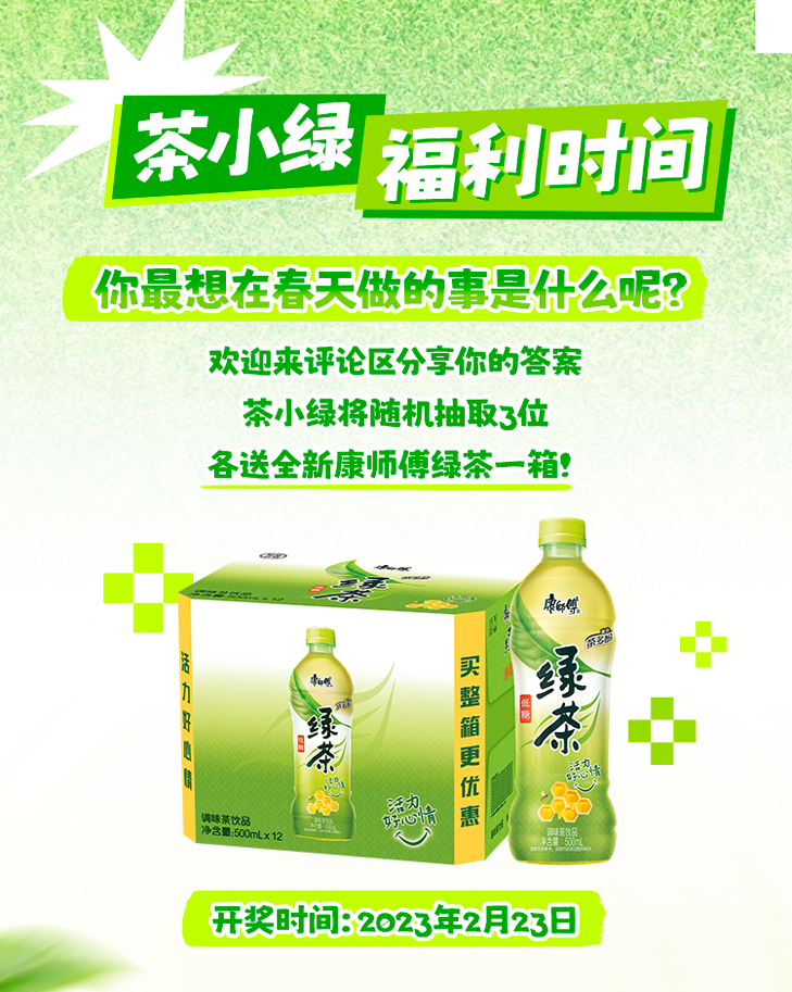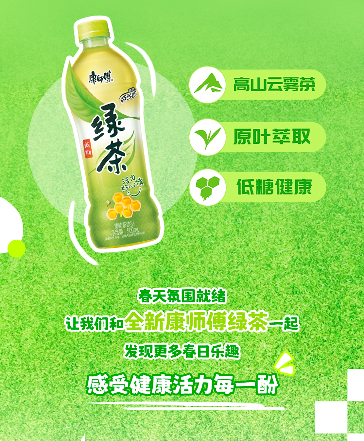 推荐:春困来袭,康师傅绿茶通过「点击展开」的交互形式模拟为茶小绿注入健康活力,吸引大家互动抽奖。