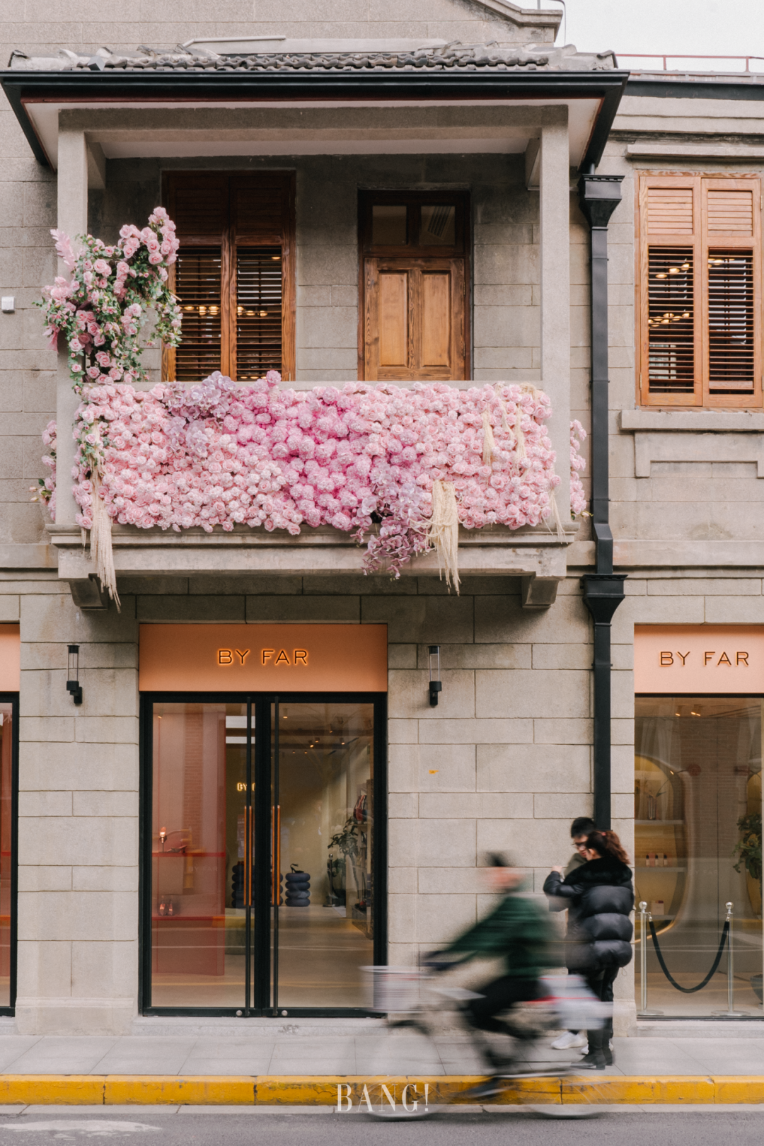 漫步张园街头,经常能发现一些惊喜的小彩蛋,宝格丽的花墙和BY FAR的花阳台都是其中之一。