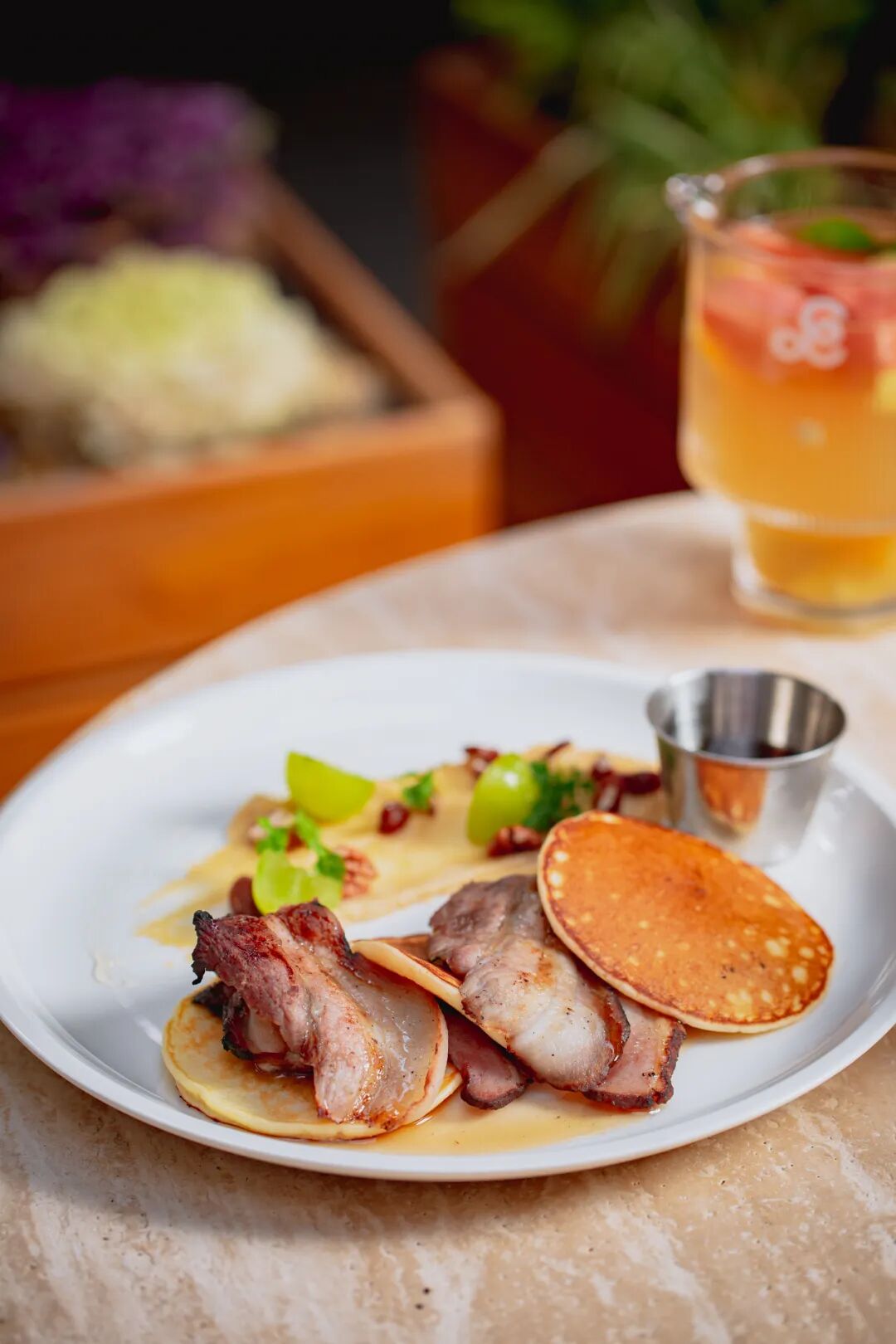一杯鲜果茶、一份自制两头乌培根及胡姆斯热香饼,瞬间犹如置身法国街头café,闲适又充满情调,可为消磨时光的绝妙选择。