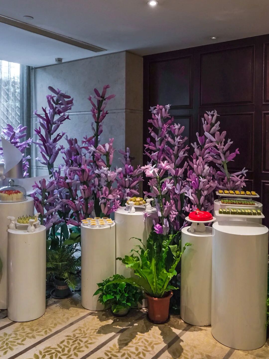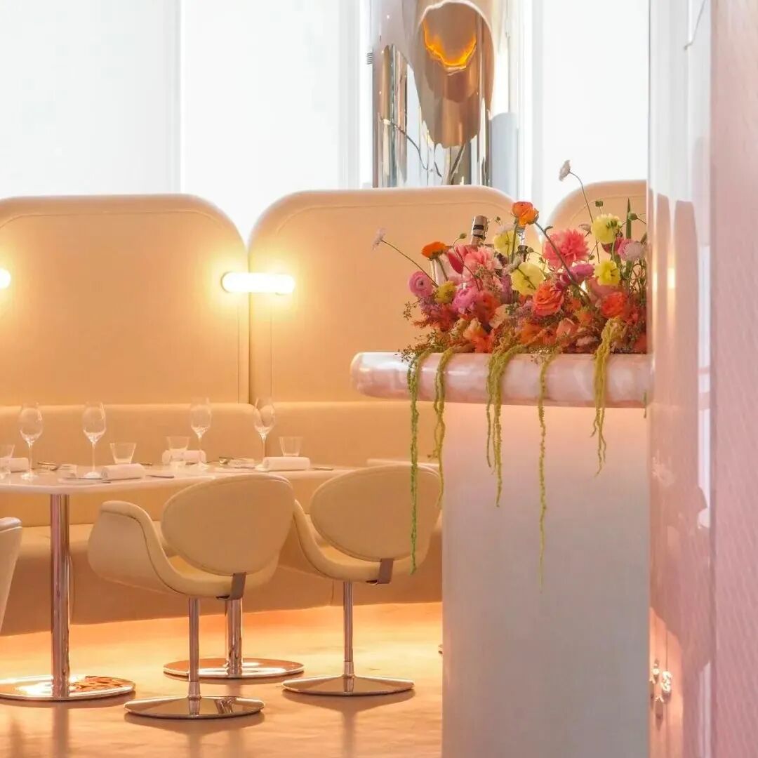 餐厅宛如梦幻的艺术空间,从镂空屋顶、粉色玛瑙石桌台、羊绒沙发、法国利摩日瓷器品牌,每一处细节都装点得优雅美好,高级感拉满。
