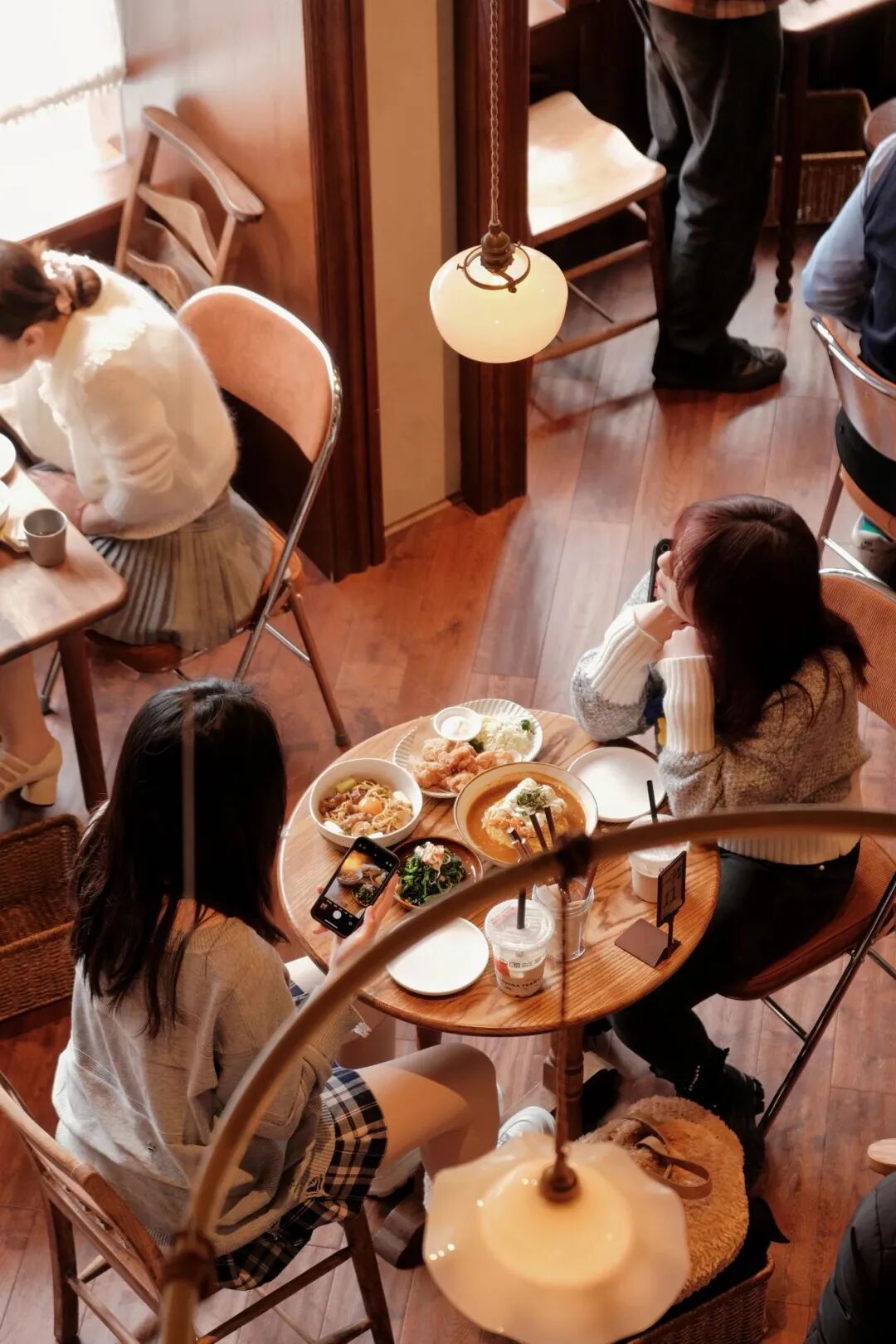 在静安寺回归的“魔都网红制造机”FINE,拥有2层楼的复古空间。手绘菜单、水泥墙面、原木桌椅、圆形吊灯……每一个细节都是日式温馨小家的感觉。