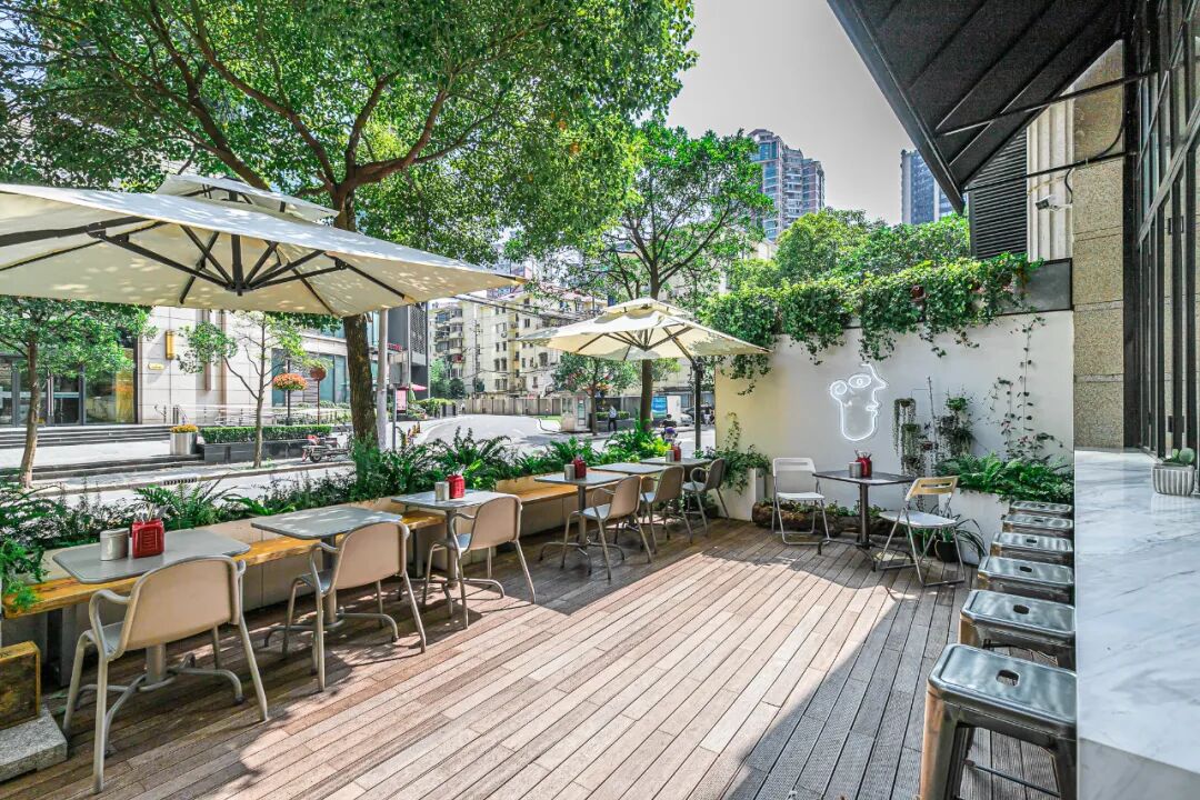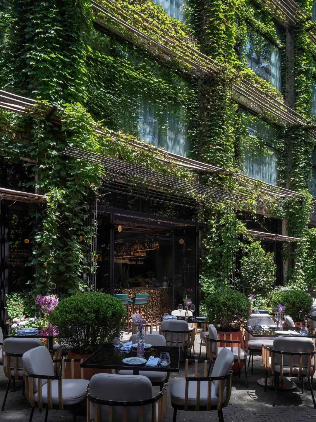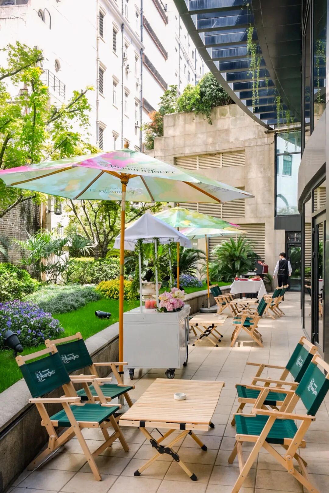 在静安寺大隐于市的CUCURUCU,拥有一处宽敞的庭院。满眼的绿植,随意散落的桌椅,无一不给人轻松惬意的氛围感。