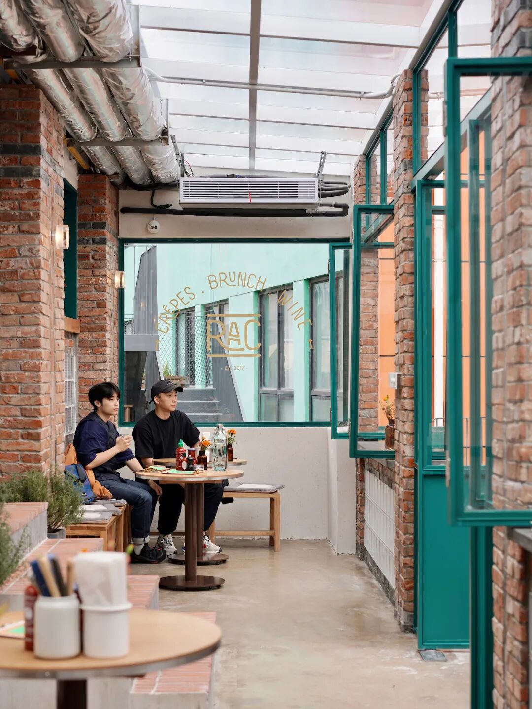 这里延续了RAC一贯的设计风格,除了保留了经典的复古绿和金属边框、原木餐桌椅外,建筑内饰也基本保留原型、修旧如旧,连红砖墙用的都是搜集来的老房子拆下的旧红砖。