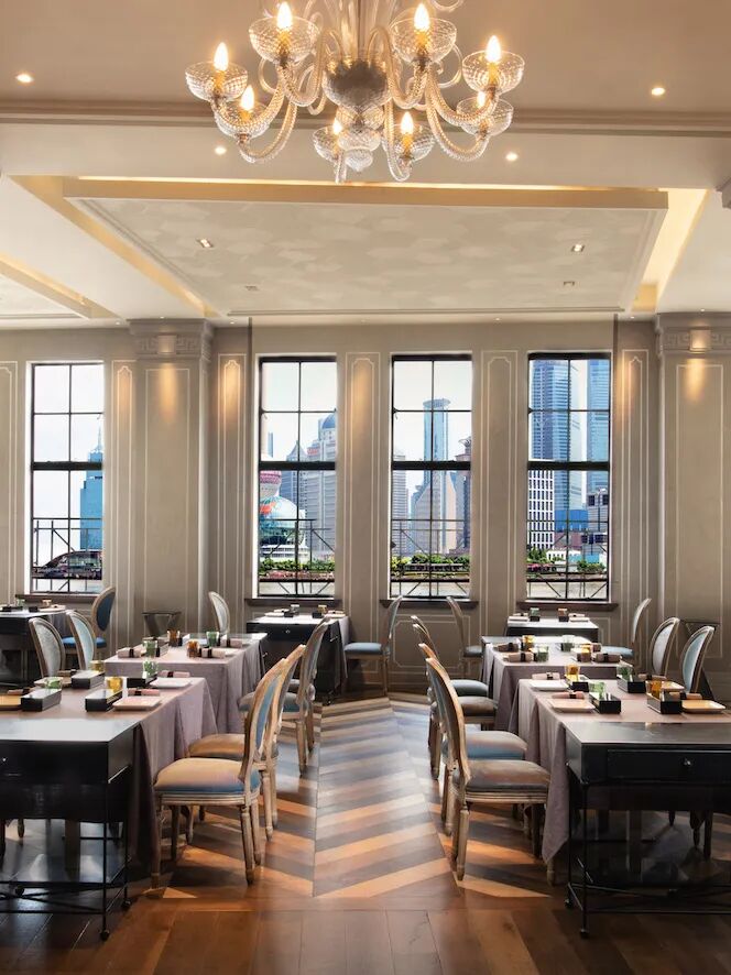 坐落于璞麗酒店的米其林一星法餐斐霓丝,地处静安寺商圈却大隐于市,餐厅内的落地玻璃窗正对静安公园的丛林树影,幽静而美丽。