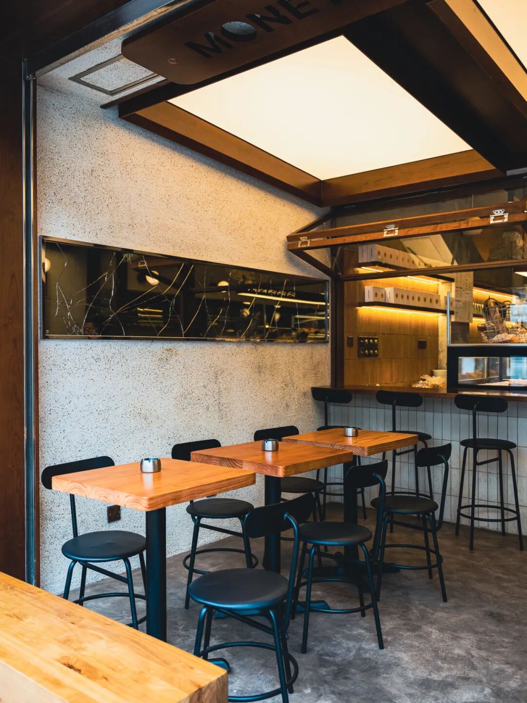 位于永康路的Money Shops,大大的门头看起来圆润可爱,里面也全部是木棕色系桌椅和米白色墙面的组合,温馨又充满氛围感。
