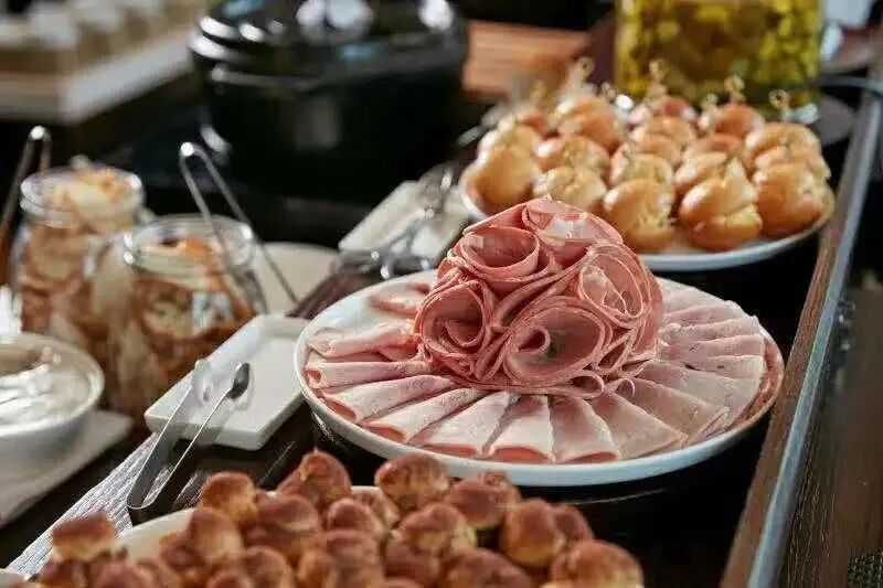 畅享式的早午餐,包括丰盛的自助前菜、海鲜、冷肉火腿、主菜、纯正手工意面、现制披萨以及令人挑到眼花撩乱的甜点,超级满足!
