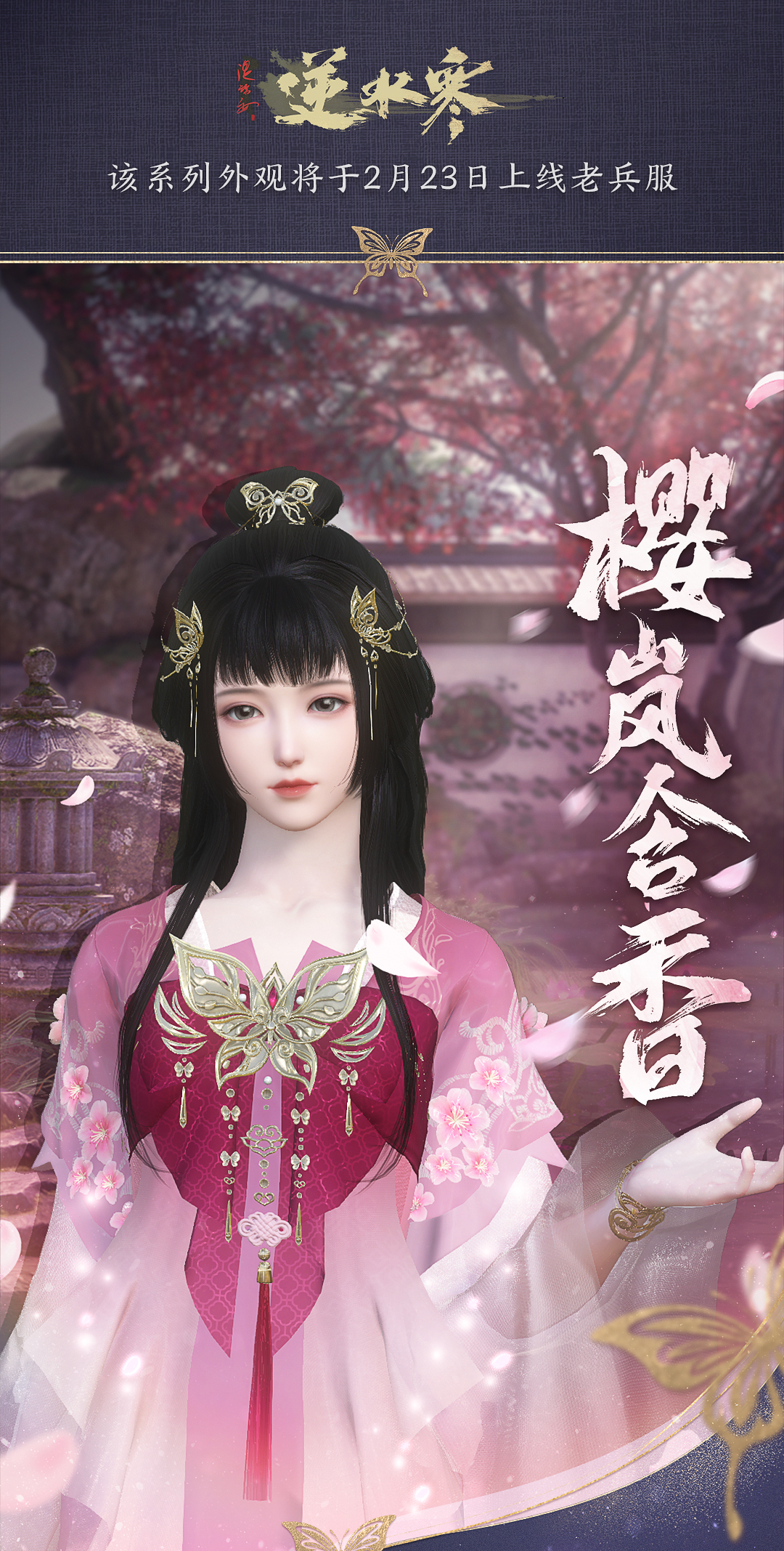 这周四(2月23日)更新后,老兵服艮岳奇珍上架非绑礼盒【樱岚时装礼盒】,使用可获得绑定樱岚对应性别时装和发型。礼盒限时售卖两周,下架后永不返场。