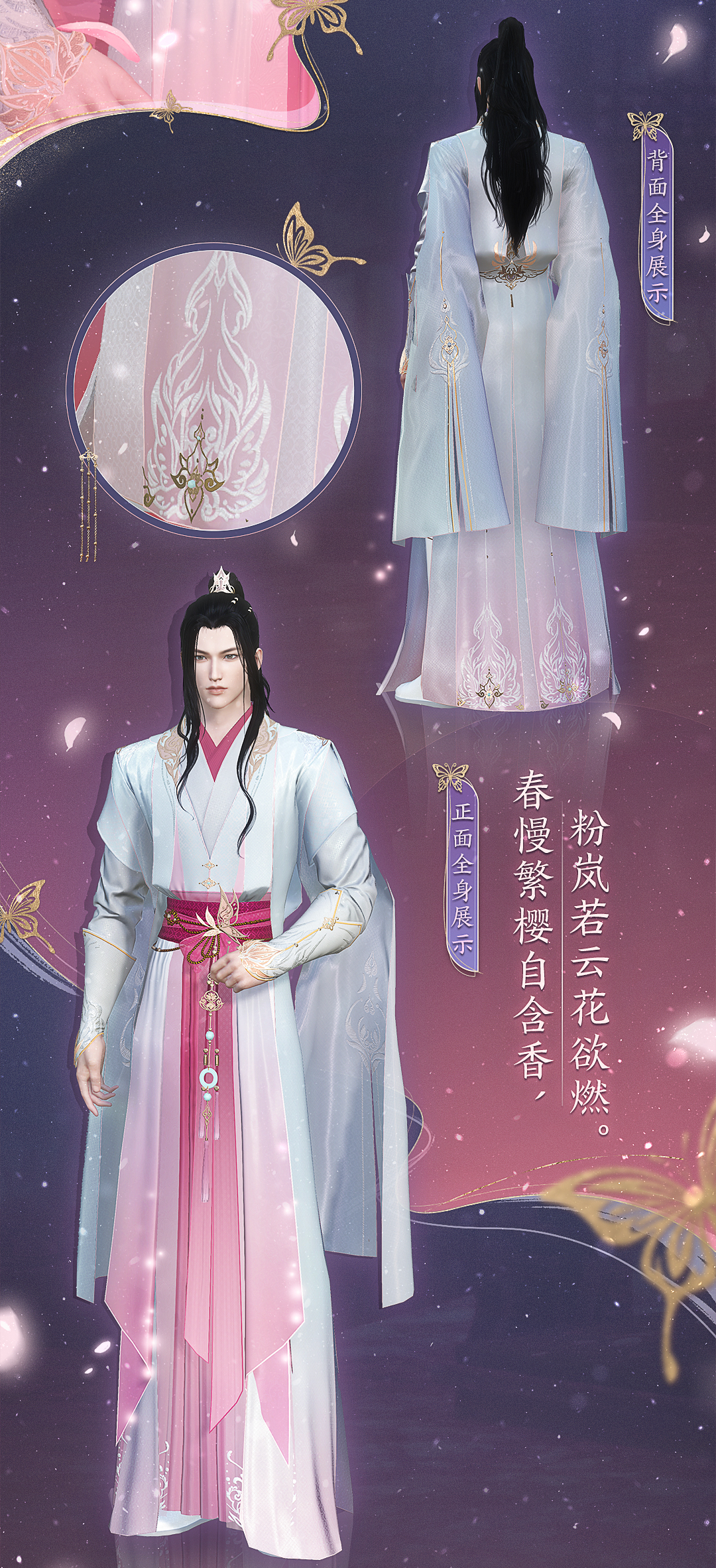 男款【樱岚云若】恰如其名,好似远山间围绕花海的烟岚,又好似青空上鸟瞰花海的浮云。