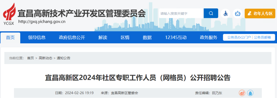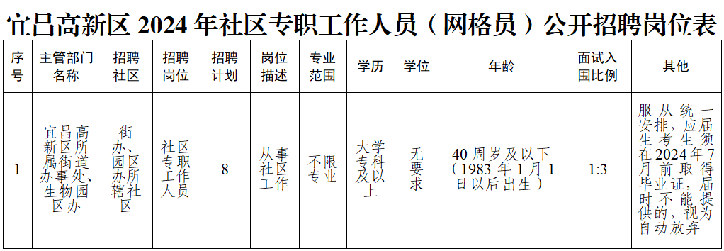 社区专职工作人员(网格员)公开招聘公告