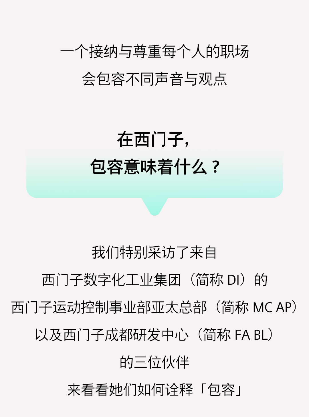 在西门子,每个人都可以拥抱技术,主导创新,创造价值,收获看得到的成就感,这是我想要的包容。