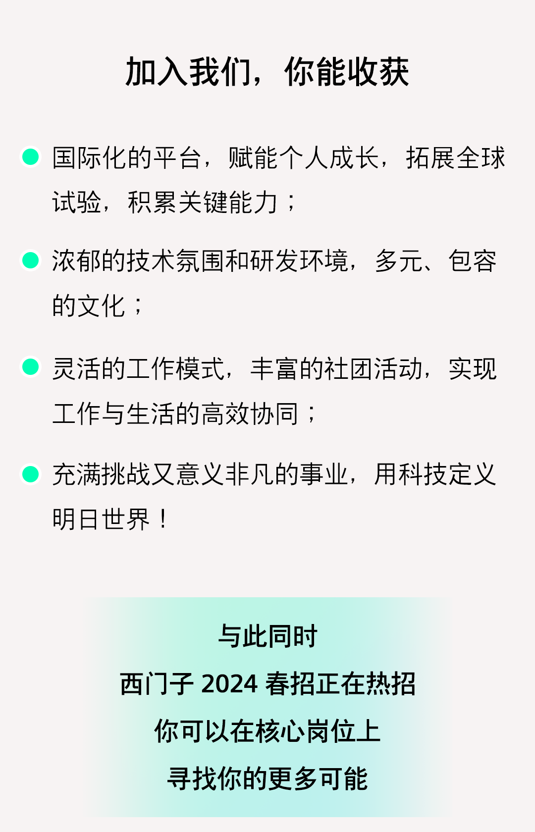 文章内容来源于公众号:西门子招聘 点此可查看原文。若涉及版权问题或存在侵权情况,请及时与我们联系,我们将第一时间进行删除处理。